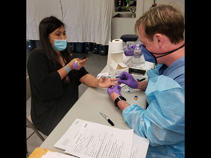 วิธีการตรวจใช้ serology covid 19 strip test (US FDA Approved) จากตัวอย่างเลือดจะทราบผลภายใน 5 ถึง 10 นาที โดยมีกำหนดการดังนี้