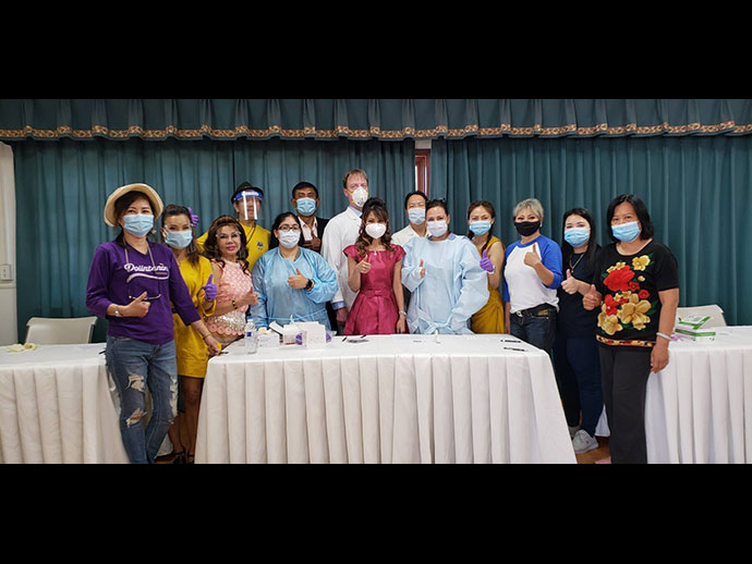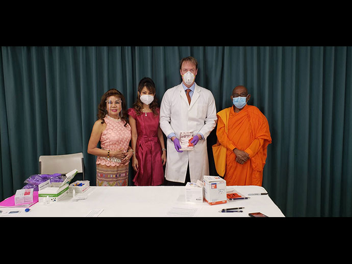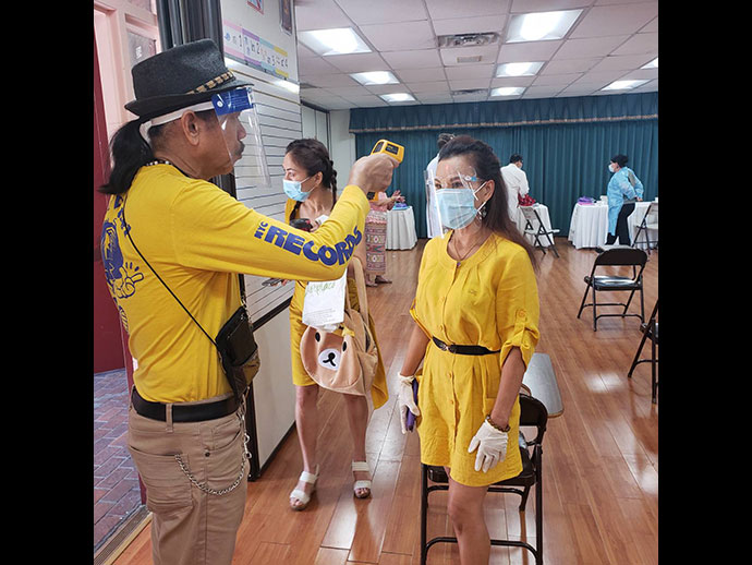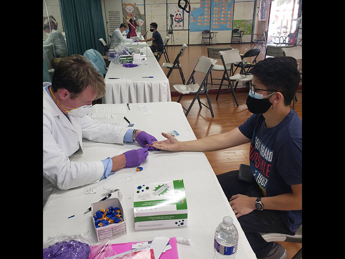 โดยไม่ต้องเสียค่าใช้จ่ายใดๆ ผู้เข้าตรวจนำบัตรประกันสุขภาพเช่น เมดิแคร์ เมดิแคล อินชัวรันซ์ ไอดี ไดรเวอร์ไลเซ่นหรือพาสปอร์ตมาแสดงด้วย วิธีการตรวจใช้ serology covid 19 strip test (US FDA Approved) จากตัวอย่างเลือดจะทราบผลภายใน 5 ถึง 10 นาที