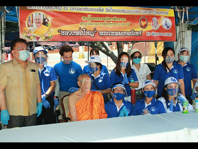สถานกงสุลใหญ่ ณ นครลอสแอนเจลิส วัดไทยแอลเอ และสภาไทยทาวน์ ลอสแอนเจลิส "ร่วมใจถวาย" จัดพิธีทำบุญฉลอง เนื่องในวันคล้ายวันเกิด อายุวัฒนมงคล 88 ปี หลวงพ่อใหญ่ พระเทพมงคลวิเทศ เจ้าอาวาสวัดไทยลอสแอนเจลิส