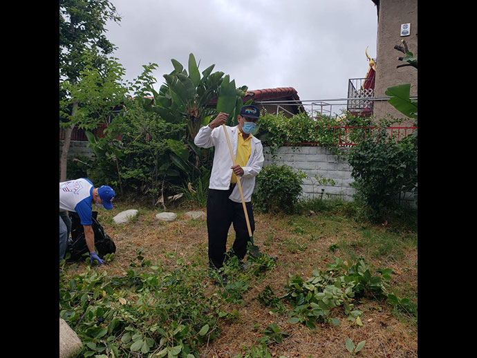 เมื่อวันอาทิตย์ที่ 28 มิถุนายน 2563 คุณกนิษฐา เพอร์ไรด้า “เหมี่ยว” นายกสมาคมไทยแห่งแคลิฟอร์เนียภาคใต้, คุณหมอ Monte Christen, ผู้ช่วยหมอ “น้องมุก” ญาดามณีรัตน์ พัฒนสินโชติวุฒิ และ คุณสมชาย ไทยทัน กรรมการวัดไทยแอลเอ. พร้อมทีมงานมาช่วยกันตัดแต่งต้นไม้ และทำความสะอาดตามบริเวณข้างวัดฯให้เป็นระเบียบและสวยงาม ขออนุโมทนาบุญ..สาธุกับทุกท่านด้วยนะค่ะ