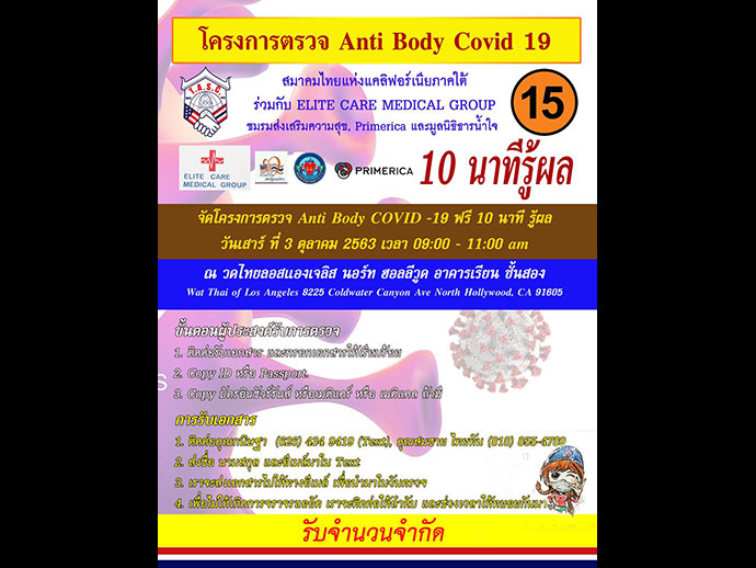 จัดให้มีการตรวจโควิด-19 จากภูมิคุ้มกันร่างกายหรือ Anti-Body Test ซึ่งจะเป็นการตรวจ ณ Hollywood career college แก่ประชาชนทั่วไป (9/26/2020 )