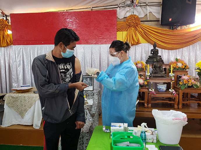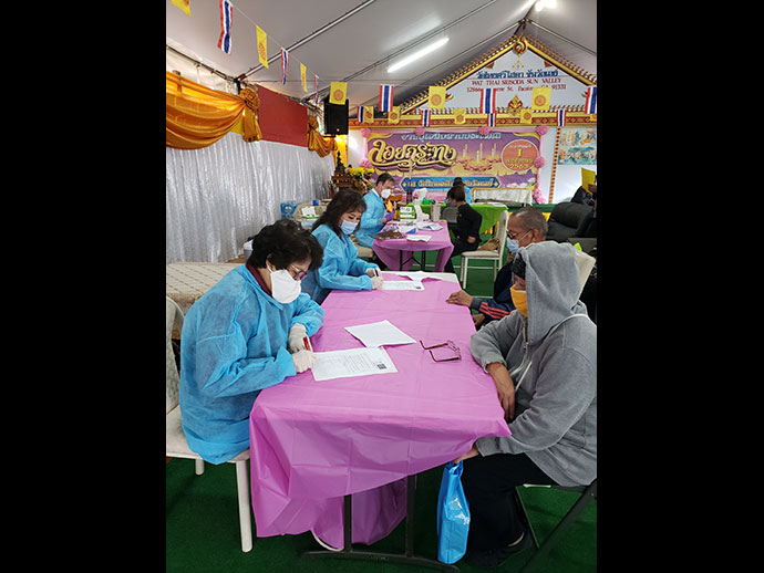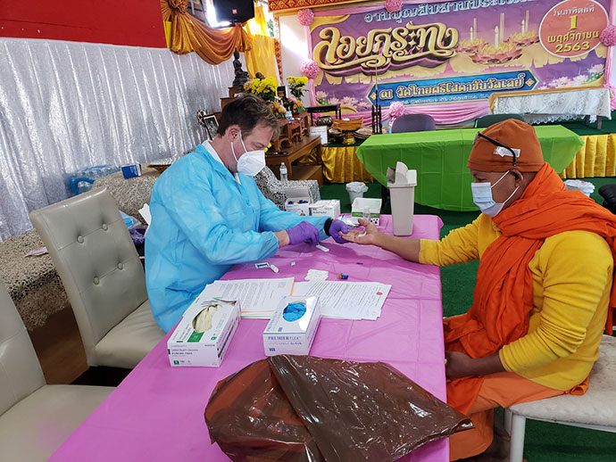 จัดให้มีการตรวจโควิด-19 จากภูมิคุ้มกันร่างกายหรือ Anti-Body Test และฉีด Flu shot ครั้งที่ 17 (11/07/2020 ) ณ วัดศรีโสดา แก่พระสงฆ์และประชาชนทั่วไป