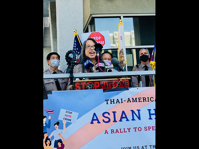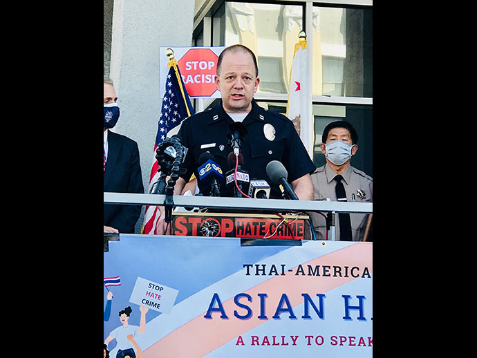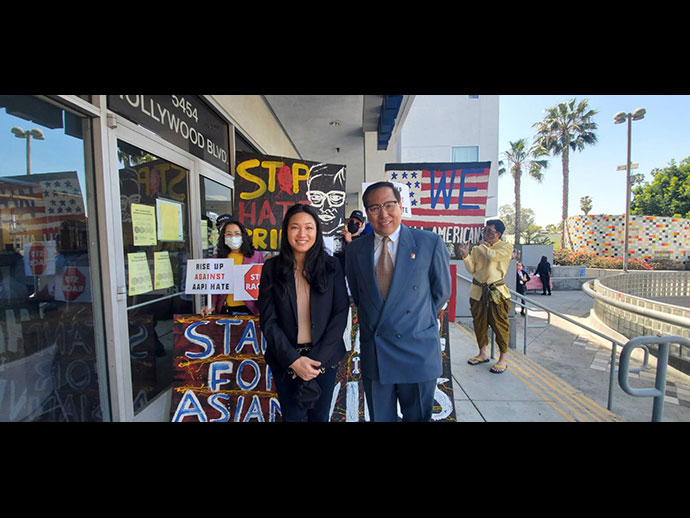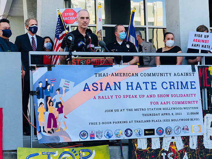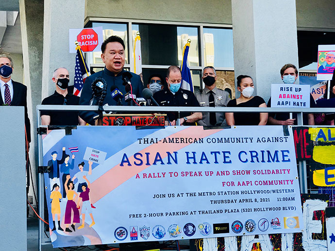 เมื่อวันที่ 8 เมษายน 2564 เวลา 11.00 am ที่ไทยทาวน์ บริเวณหัวมุมถนนฮอลลีวูดและเวสเทิร์น โดยมี กงสุลใหญ่ ณ นครลอส แอนเจลิส มังกร ประทุมแก้ว, นักการเมือง, ผู้นำองค์กรชาติเอเชี่ยน, เจ้าหน้าที่ระดับสูงของLAPD และ LASD ให้เกียรติเข้าร่วมกล่าวในงาน