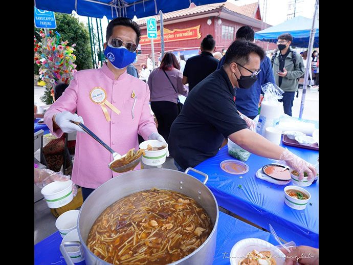โดยมีท่านกงสุลใหญ่ มังกร ประทุมแก้ว เป็นประธานในพิธี คุณตัน พัฒนะ นายกสภาไทยทาวน์ เป็นประธานจัดงาน คุณจีน่า ปรีชา และรองประธานจัดงาน ในงานได้จัดให้มีพิธีทำบุญตักบาตร โรงทานจากสมาคม ชมรมต่างๆ แจกอาหารและของแจกมากมาย