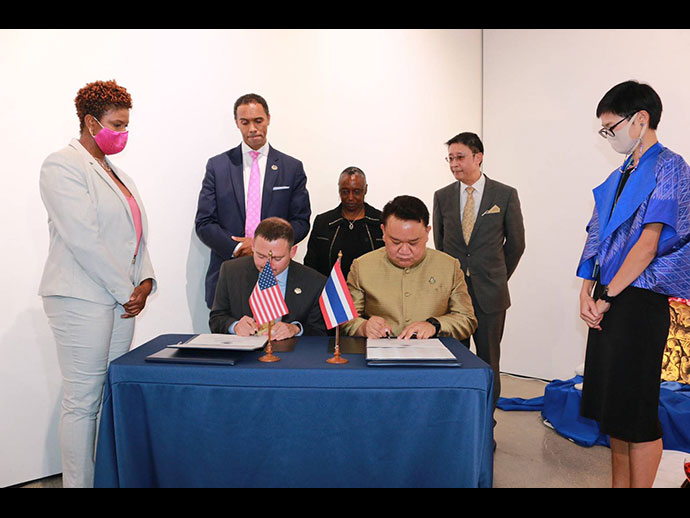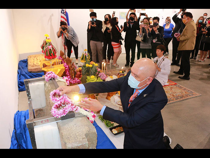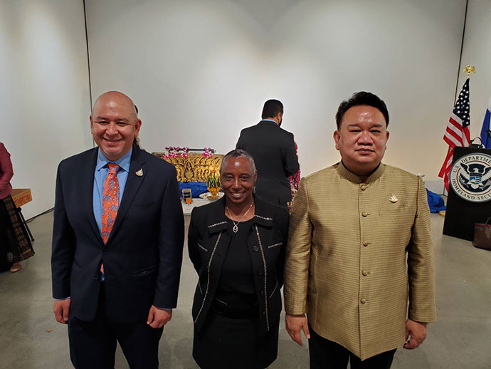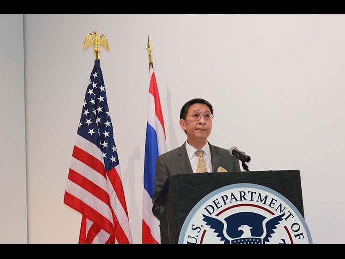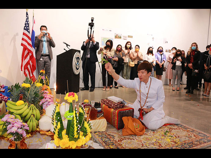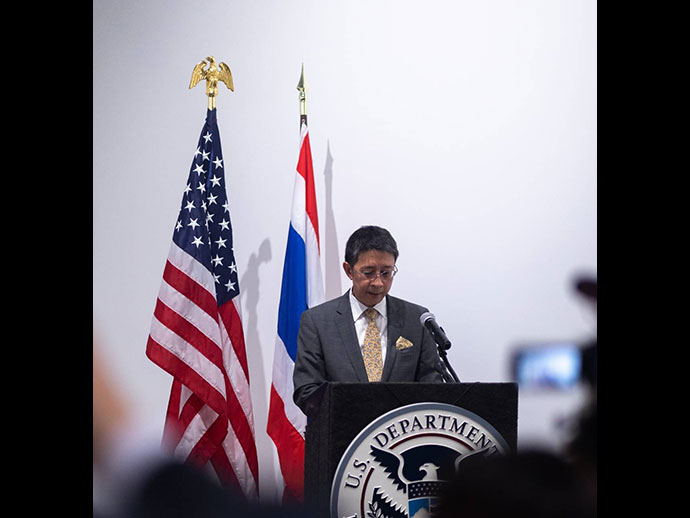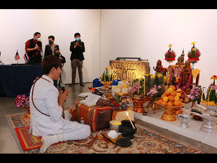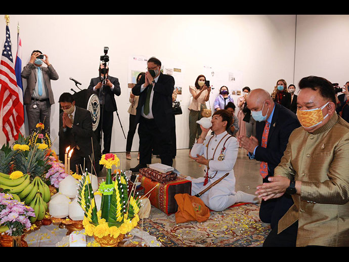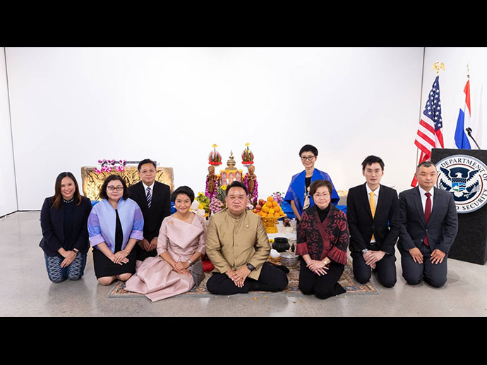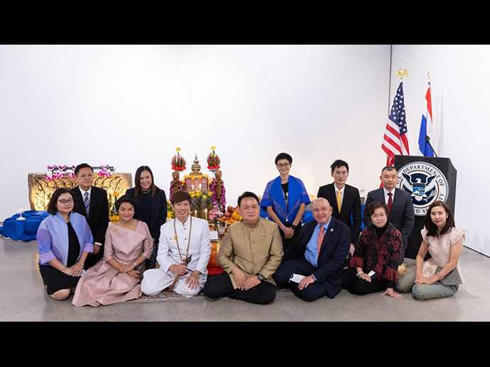 การส่งมอบโบราณวัตถุที่มีความสำคัญต่อประวัติศาสตร์ โบราณคดี และวัฒนธรรม คืนให้แก่รัฐบาลไทยและ ประชาชนไทยในครั้งนี้ สถานกงสุลใหญ่ ณ นครลอสแอนเจลิส ขอแสดงความขอบคุณและชื่นชมการทำงานกว่า 3 ปี ของ หน่วยงานที่สำคัญของฝ่ายสหรัฐฯ โดยเฉพาะอย่างยิ่งสำนักงานสืบสวนความมั่นคงแห่งมาตุภูมิสหรัฐฯ (Homeland Security Investigation – HSI) และกระทรวงยุติธรรมสหรัฐฯ ในการสืบสวนและรวบรวมหลักฐานต่าง ๆ ตลอดจนการประสานงาน อย่างใกล้ชิดกับหน่วยงานไทยและผู้เขี่ยวชาญด้านโบราณคดีของไทย จนประสบความสำเร็จในที่สุด การทำงานร่วมกันดังกล่าว ของฝ่ายไทยและสหรัฐฯ เป็นสิ่งแสดงถึงความสัมพันธ์และมิตรภาพอันดีและยาวนานระหว่างไทยและสหรัฐฯ
