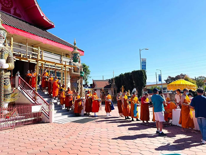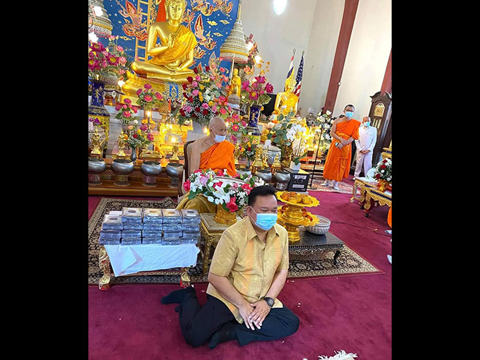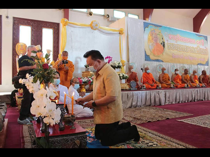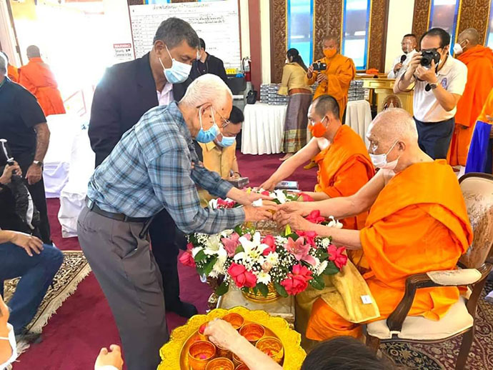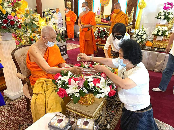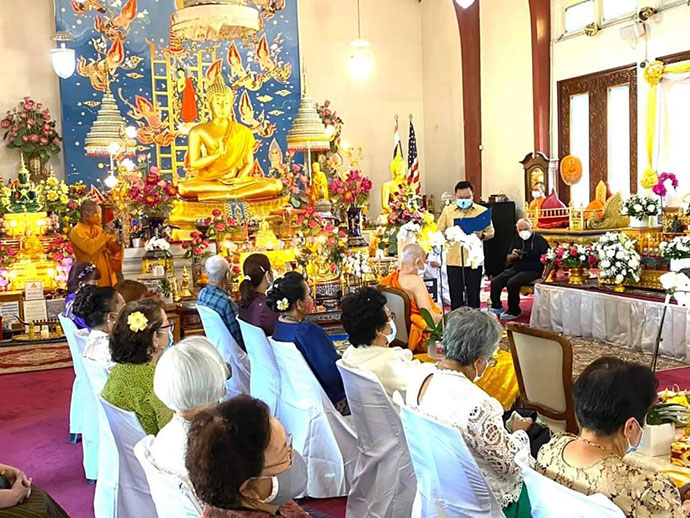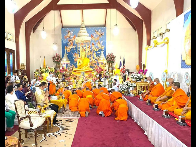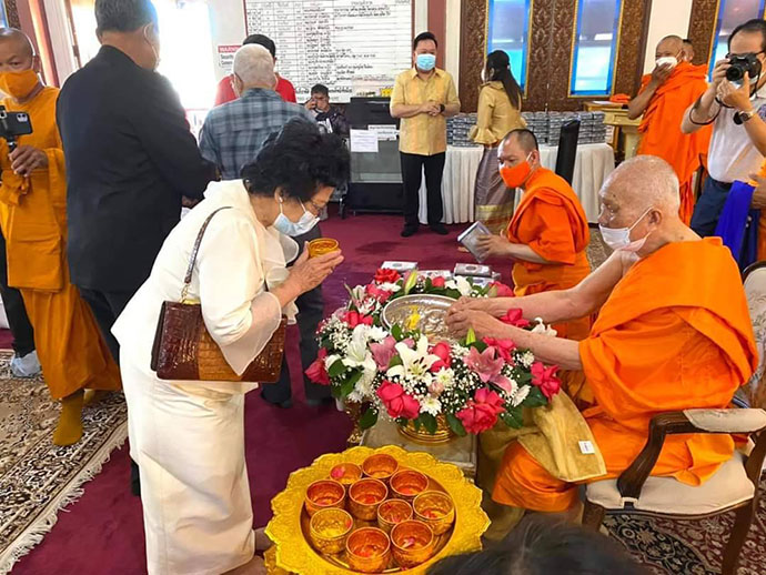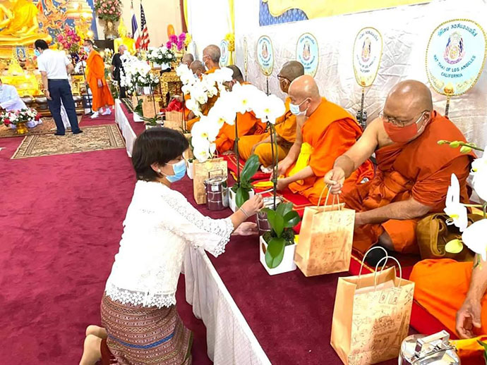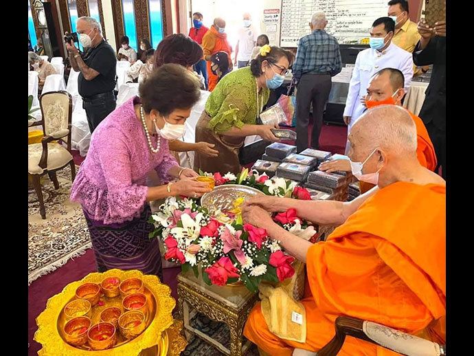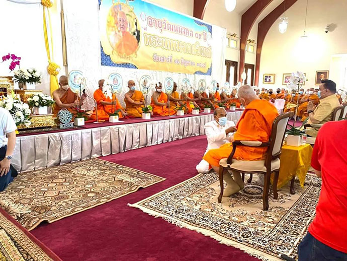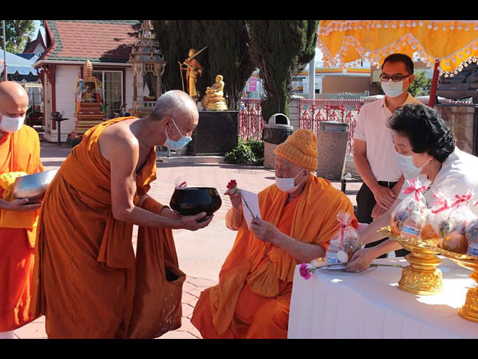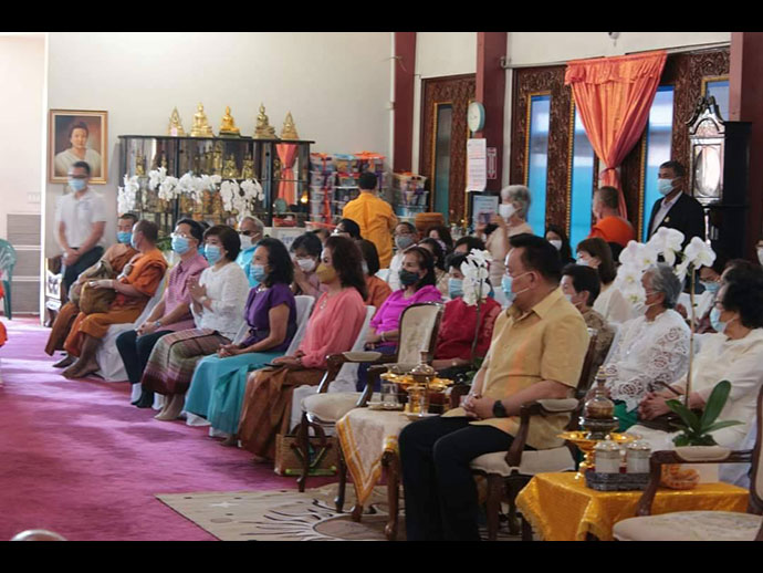 โดยคณะสงฆ์และกรรมการวัดไทยฯ พร้อมใจกันจัดถวาย เมื่อเช้าวันเสาร์ที่ 12 มิถุนายน ที่ผ่านมา ซึ่งตรง กับวันเกิดของ หลวงพ่อใหญ่ พระเทพมงคลวิเทศ เป็นพิธีตามประเพณีที่ปฏิบัติกันสืบมา และสอดคล้องกับสถานการณ์ป้องกันไวรัสโควิด มีพระสงฆ์จากวัดต่างๆ มาร่วมพิธีจำนวนประมาณ 50 รูป เจริญพระพุทธมนต์ ถวายไทยธรรมและแจกข้าวสารให้ญาติโยมที่ศรัทธามาร่วมบุญอย่างอบอุ่น