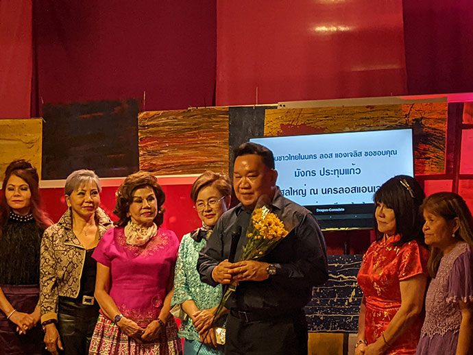 ผู้แทนชุมชน/สื่อมวลชนชาวไทยร่วมงานเลี้ยงอำลาและร่วมแสดงความยินดีกับ นายมังกร ประทุมแก้ว