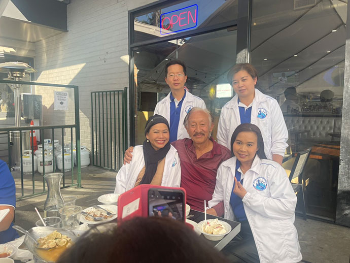 นำทีมโดยคุณศรีวงศ์ อาญาสิทธิ์ ประธานอำนวยการสภาไทยทาวน์ฯ คุณตัน พัฒนะ นายกสภาไทยทาวน์ฯ และทีมงานบริหารสภาไทยทาวน์ฯ ณ ร้านข้าวต้ม Hollywood Thai Town