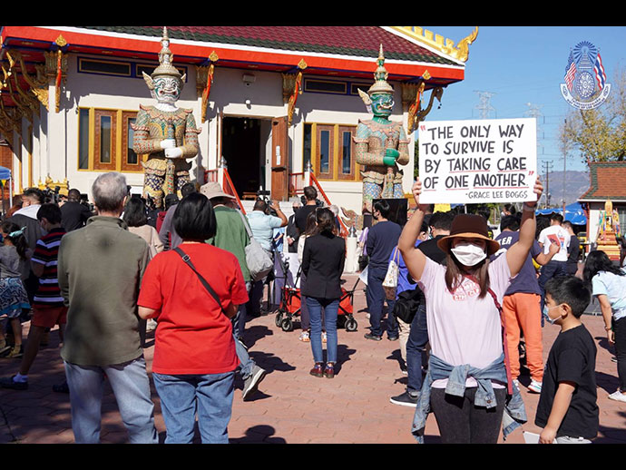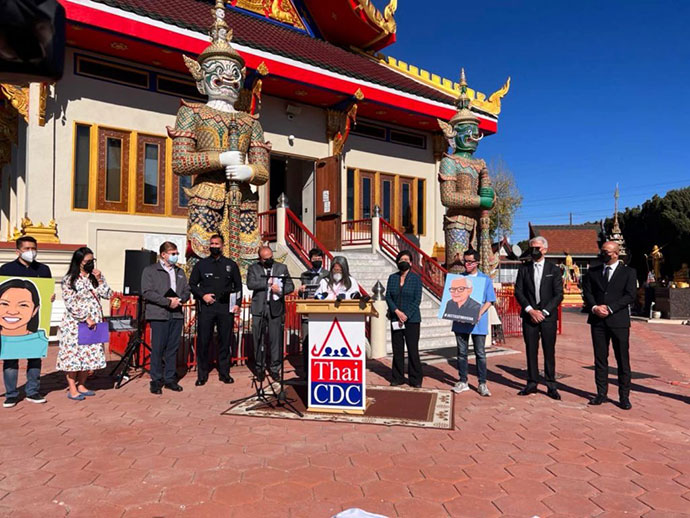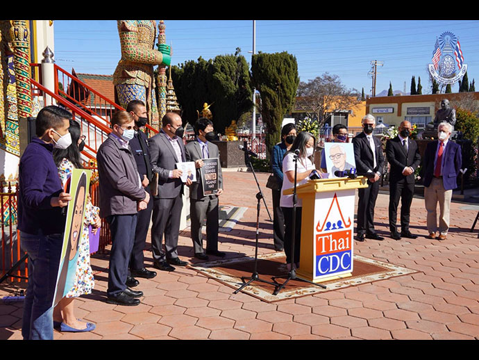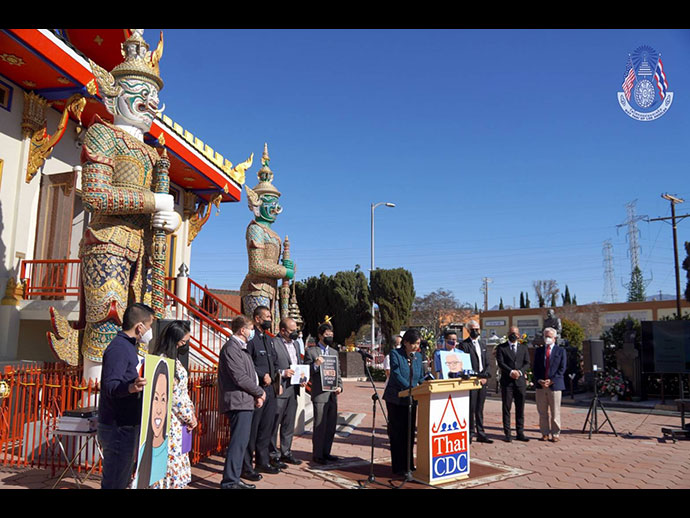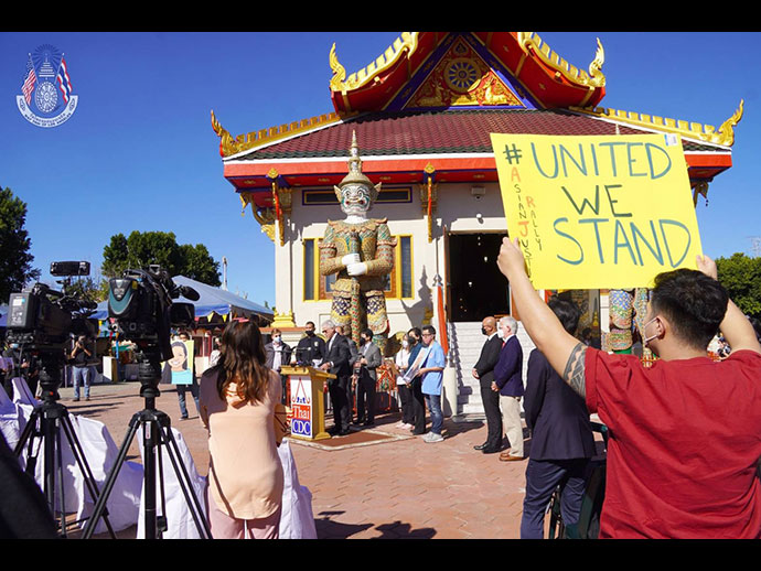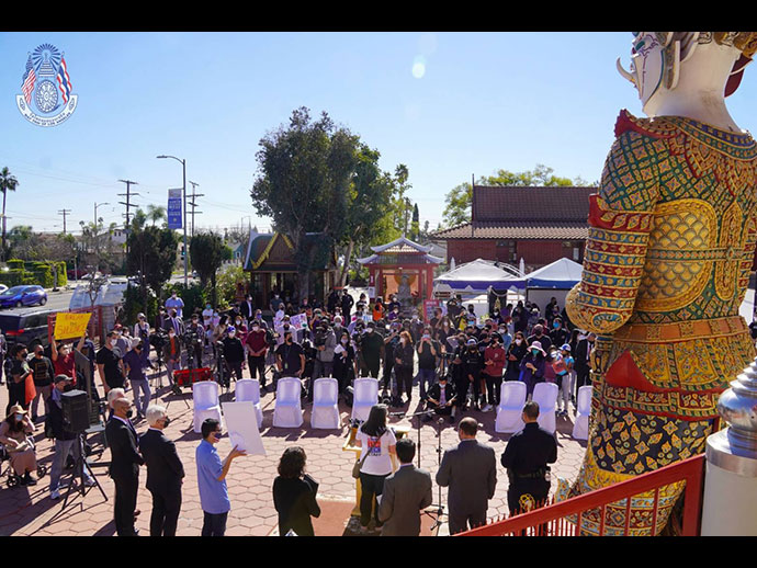โดยมีกงสุลใหญ่นครลอสแอนเจลิส ต่อ ศรลัมพ์ เป็นผู้นำกลุ่มชุมชนชาวไทยในกิจกรรมครั้งนี้ นอกจากนี้ ยังมีผู้แทนองค์กร สมาคมไทยต่างๆ เข้าร่วมด้วย โดยบุคคลสำคัญที่ร่วมงานต่างแสดงจุดยืนต่อต้านอาชญากรรมจากความเกลียดชัง และยืดหยัดที่จะต่อสู้เพื่อยุติอาชญากรรมต่อชาวเอเชียทุกช่องทาง