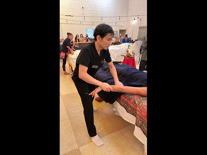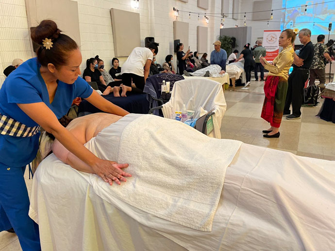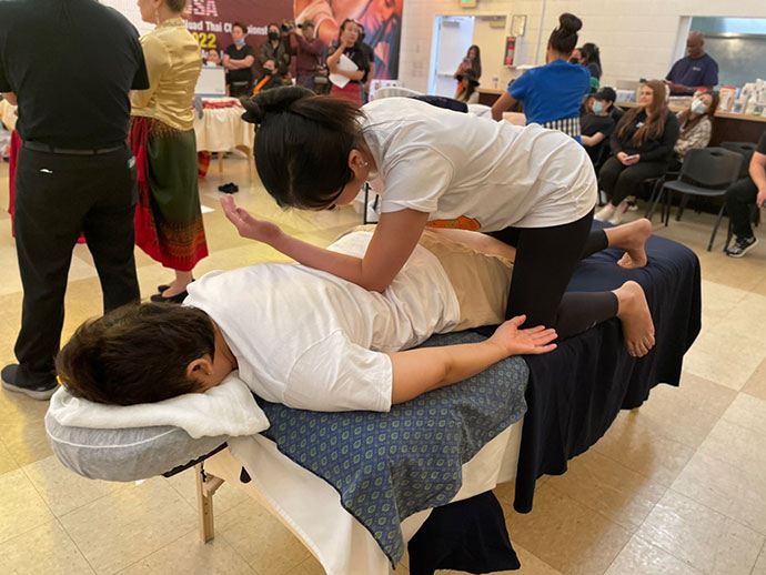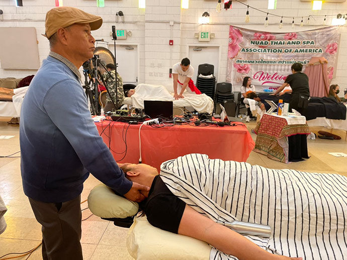 แข่งขันและผู้จัดการแข่งขันนวดไทย..ครั้งแรก ครั้งประวัติศาสตร์ของนวดไทยที่จัดแข่งนอกประเทศไทย เริ่มแข่งขันออนไลน์ในวันที่ 6 เมษายน 2565 แบบปิด และการแข่งขันในสถานที่จริง วันที่ 7 เมษายน 2565 Hollywood Seventh-day Adventise Church 1711 N Van Ness Ave. Los Angeles CA 90028 เพื่อคัดผู้ชนะเลิศแต่ละประเภทเป็นตัวแทนอเมริกาไปร่วมแข่งขันนวดไทยชิงแชมป์โลก ที่เมืองซูริก ประเทศสวิสเซอร์แลนด์ในรอบชิงชนะเลิศระดับโลก ต่อไป