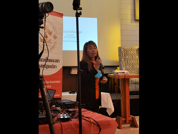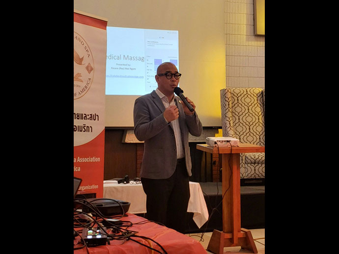 จัดโดย สมาคมนวดไทยและสปาแห่งสหรัฐอเมริกา ณ โบสถ์ Hollywood Seventh-day Adventist Church โดยท่าน ต่อ ศรลัมพ์ กงสุลใหญ่ ณ นครลอสแอนเจลิส เป็นประธานกล่าวเปิดพิธีการอบรม