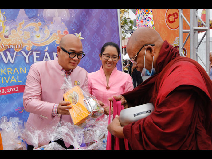 โดยภาคเช้ามีพิธี ทำบุญตักบาตร ข้าวสาร อาหารแห้ง พระภิกษุสงฆ์ ประมาณ 70 รูป ในวันอาทิตย์ 28 สิงหาคม 2022 เวลา 8:30 - 10:00 น. บริเวณหน้าไทยแลนด์พลาซ่า