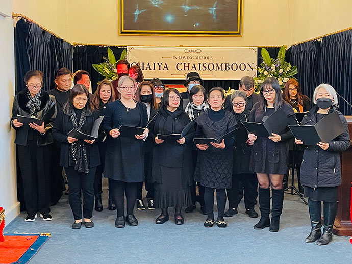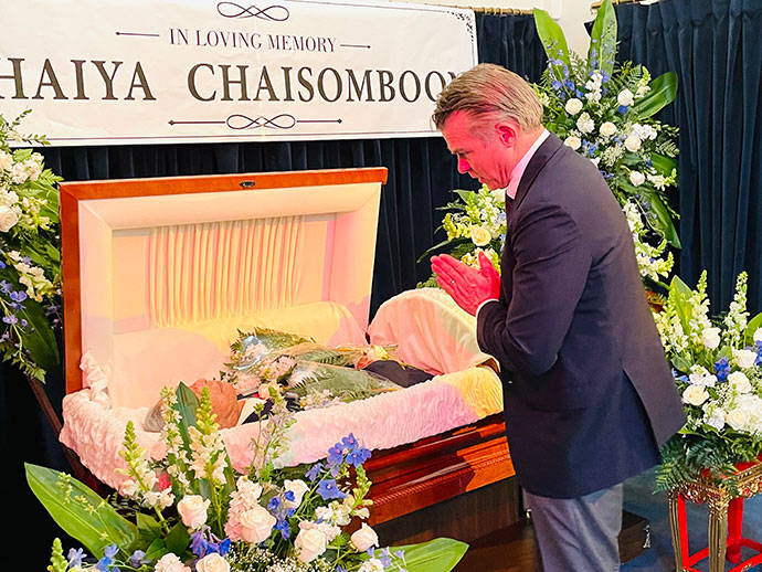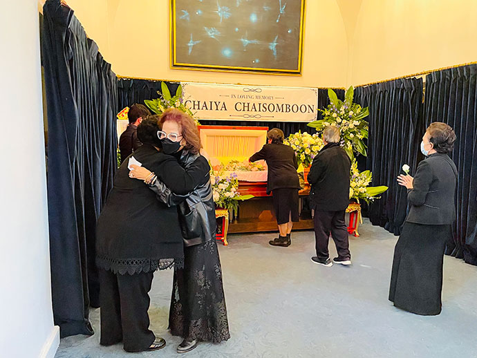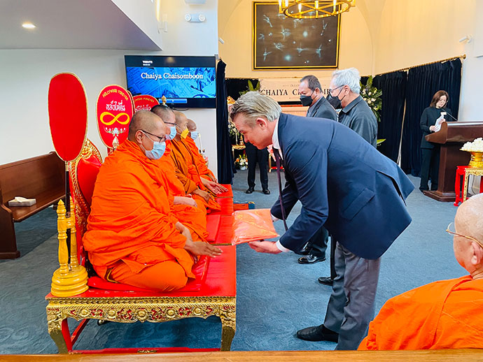 โดยมีพี่ๆ เพื่อนๆ จากชมรมอนุรักษ์มรดกไทย,โครงการเยาวชนไทยในสหรัฐอเมริกาเยือนแผ่นดินแม่, Thai Outreach Hollywood Church รวมทั้ง Mr. Tyler Cassity เจ้าของ Hollywood Forever Cemetery และทีมงาน ได้มาร่วมพิธีอย่างพร้อมหน้า