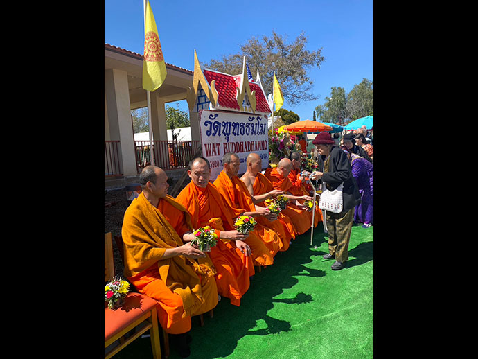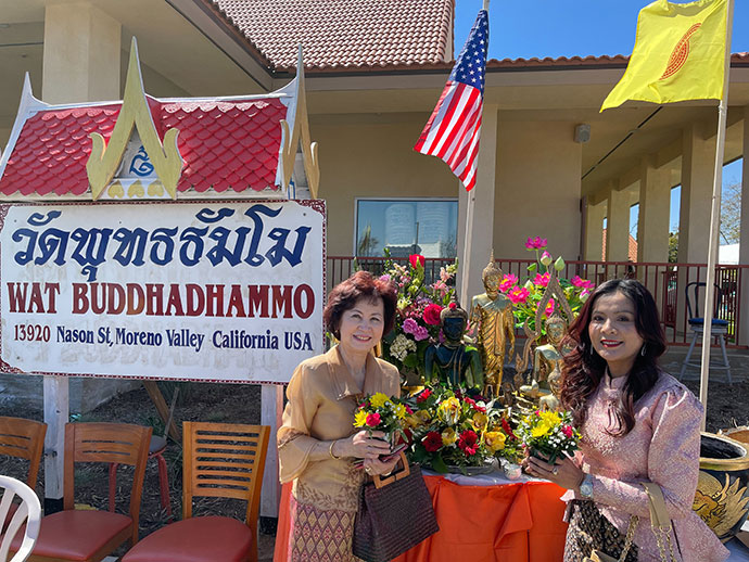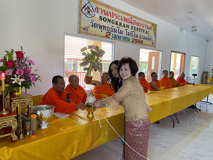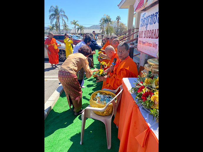 บรรยากาศงานประเพณีสงกรานต์วัดพุทธธัมโม เมือง Moreno Valley รัฐแคลิฟอร์เนีย เมื่อวันอาทิตย์ที่ 2 เมษายน 2566 โดยมี พัชรี นาดี เป็นประธานผ้าป่าฯ มีสาธุชนทั้งไทยและเทศไปร่วมทำบุญวันปีใหม่ไทยกันอย่างมากมาย ได้ปัจจัยร่วมสร้างพระอุโบสถเป็นจำนวนทั้งสิ้น$42,000 พระครูวรธรรมวิเทศ (พระอาจารย์นิคม วรธมฺโม) เจ้าอาวาสขออนุโมทนาบุญมายังทุกๆท่าน ให้เจริญด้วย อายุ วรรณะ สุขะ พละ ปฏิภาณธรรมสารสมบัติ ตลอดกาล