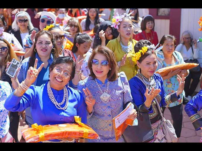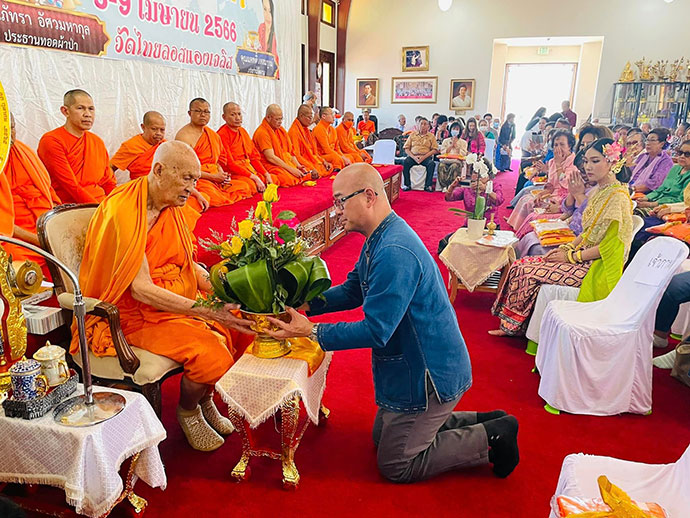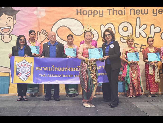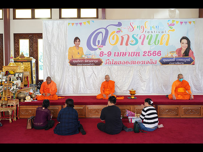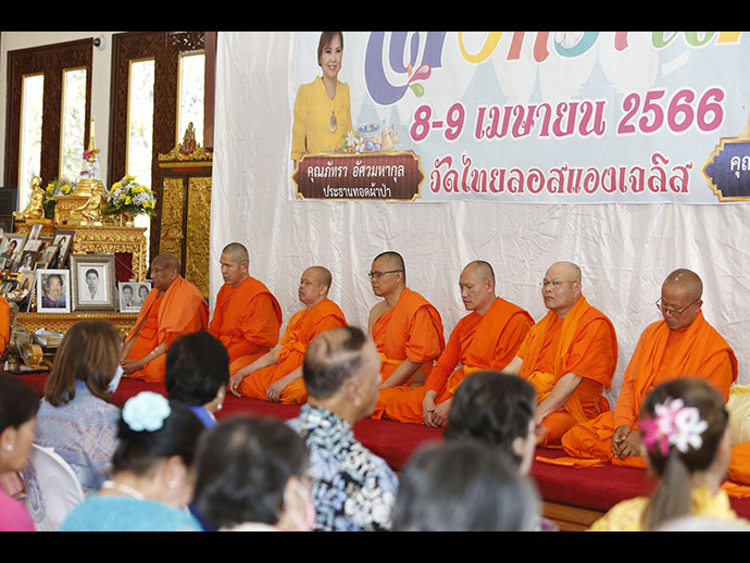 กิจกรรมประจำวันที่ 9 เมษายน 2566 ได้รับเกียรติจากกงสุลใหญ่ ณ นครลอส แอนเจลิส ต่อ ศรลัมพ์ เป็นประธานตัดริบบิ้นเปิดงานและแจกใบประกาศเกียรติคุณให้กับผู้สนับสนุนการจัดงานในปีนี้ โดยมี แคทตี้ เกศสมบูรณ์ เป็นประธานจัดงาน และ ภัทรา อัศวมหากุล เป็นประธานทอดผ้าป่าบริวารสงกรานต์