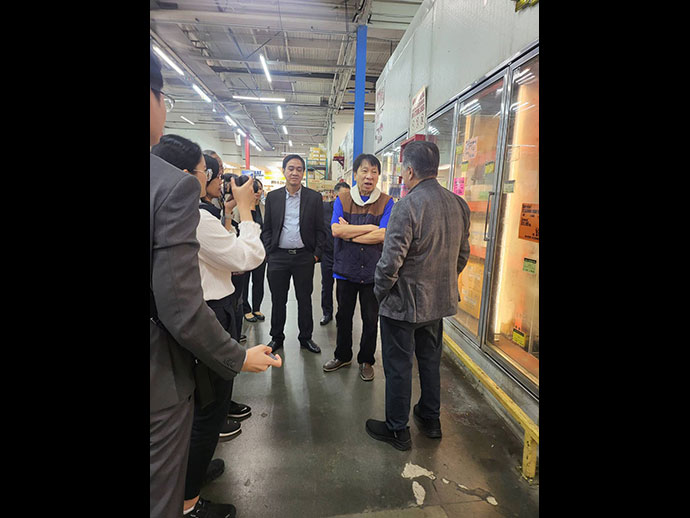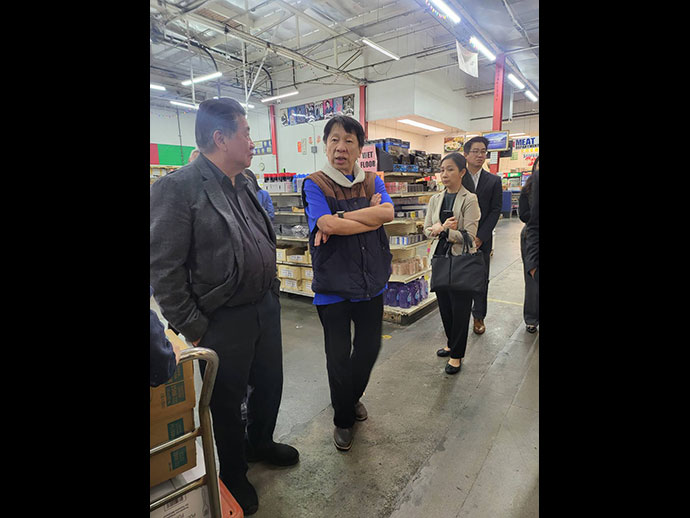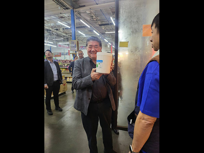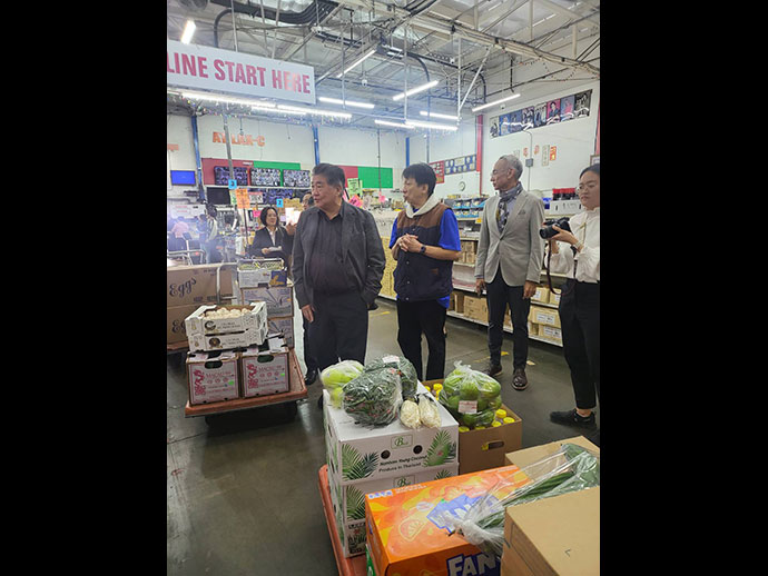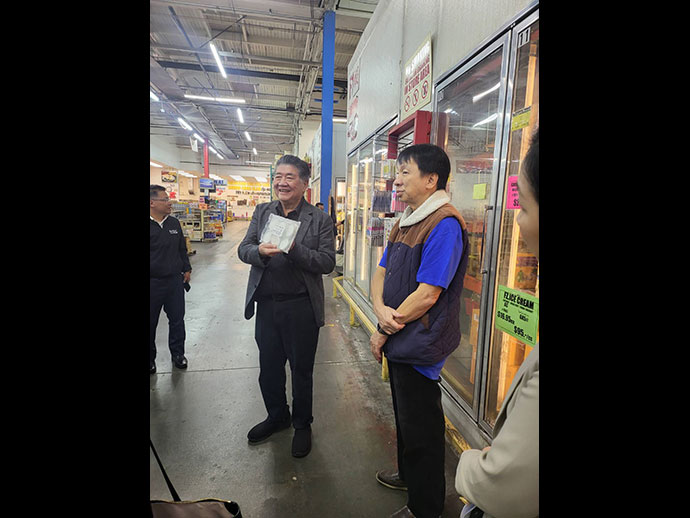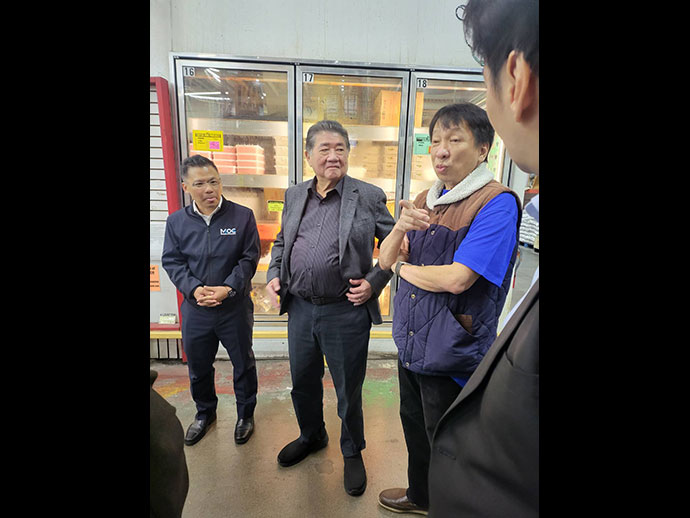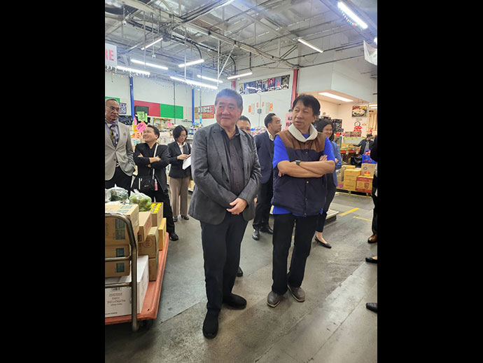 เอนก พลอยแสงงาม ประธานบริษัท LAX-C INC. ให้การต้อนรับ ภูมิธรรม เวชยชัย รองนายกรัฐมนตรีและรัฐมนตรีว่าการกระทรวงพาณิชย์ พร้อมด้วย กีรติ รัชโน ปลัดกระทรวงพาณิชย์ และคณะ ที่แวะมาเยี่ยมชมตลาด LAX-C เมื่อบ่ายวันที่ 18 มกราคม 2567 โดยมี นิวัฒน์ หาญสวัสดิ์ ผู้อำนวยการสำนักงานส่งเสริมการค้าในต่างประเทศ ณ นครลอส แอนเจลิส ร่วมมากับคณะด้วย