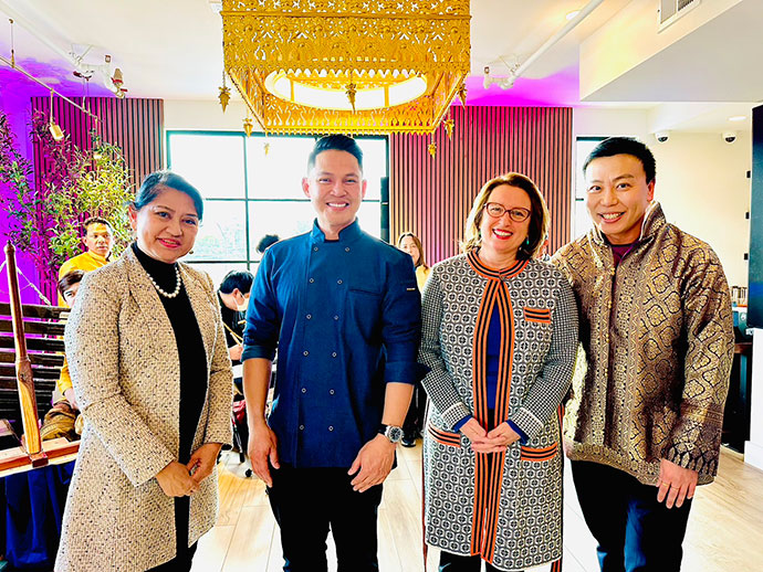 วันที่ 29 มีนาคม พ.ศ.2567 ที่ผ่านมา คุณป๊อป ขเษม แสงสว่าง, คุณอิง กุมุท จาเตอยี, คุณอธิคม ลาภนำพา และคุณจันทิมา องค์พิเชฐเมธา Co-Founder ของ Farmhouse Kitchen Thai Cuisine ได้ฤกษ์เปิดสาขาใหม่ Berkeley อย่างเป็นทางการ โดยได้รับเกียรติจาก Mrs. Sheng Thao (Mayor of Oakland) และ Mrs. Sophie Hahn (City Council-member District 5, Berkeley) มา Opening Speech ในครั้งนี้ และคุณกิ่งกาญจน์ สมิตรมร เกียว ประธานสภาวัฒนธรรมไทยแห่งสหรัฐอเมริกา เมืองฟรีมอนด์ ได้เป็นตัวแทนกล่าวอวยพรในนามชุมชนไทยในซานฟรานซิสโกและเบย์เอเรียอีกด้วย โดยแขกผู้มีเกียรติจากหน่วยงานภาครัฐ, ภาคเอกชน, เหล่าอินฟลูเลนส์เซอร์และเซเลปบิตี้คนดังในแวดวงอาหารในเขต Berkeley และใกล้เคียงได้เดินทางมาร่วมงานกันอย่างคับคั่ง