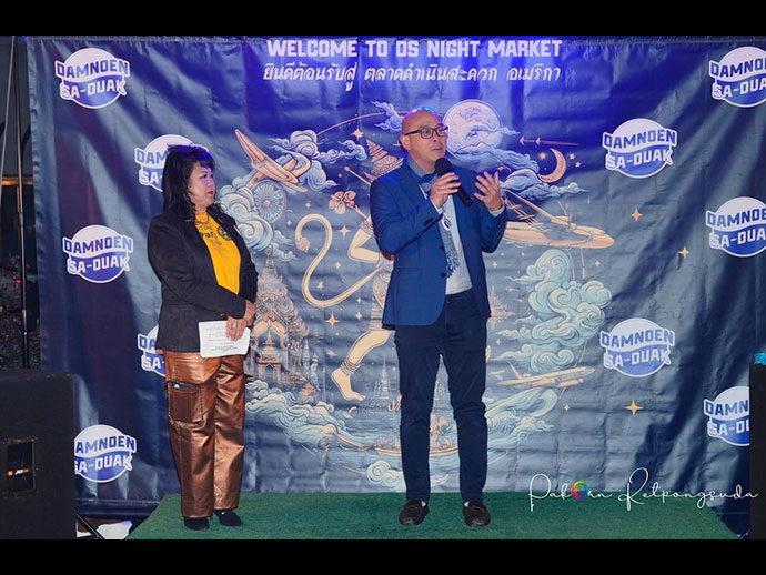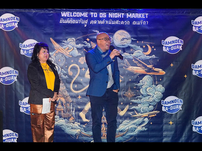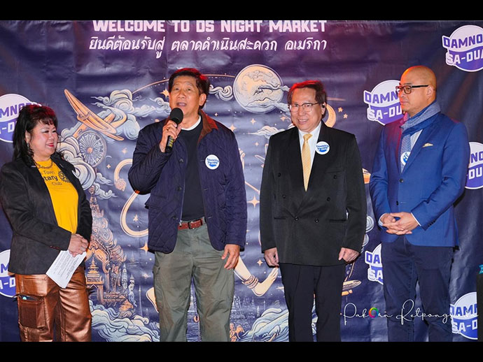 Grand Opening ตลาดดำเนินสะดวก อเมริกา “DAMNOEN SA-DUAK” ได้เปิดอย่างเป็นทางการ เมื่อวันศุกร์ที่ 29 มีนาคม 2024 โดยได้รับเกียรติจากท่านกงสุลใหญ่ต่อ ศรลัมพ์ เป็นประธานเปิดงาน ในบรรยากาศของ “Thai Street Food Market” แห่งใหม่ของแอลเอในนาม “ตลาดดำเนินสะดวก” “DS Night Market” สัมผัสลิ้มลอง อาหาร เครื่องดื่ม และขนม อร่อยถึงใจ เลือกซื้อ สินค้าตลาดนัดหลากชนิดมีให้เลือกมากมาย ตลาดเปิดตั้งแต่เวลา 5 โมงเย็น-5 ทุ่ม โดยจะเปิดทุกวันศุกร์ เสาร์ อาทิตย์ สถานที่ 1100 N Main St, Los Angeles, CA 90012 (เครดิตภาพ : ดอน เจริญสุดใจ, ปกรณ์ เกตุพงศ์สุดา)