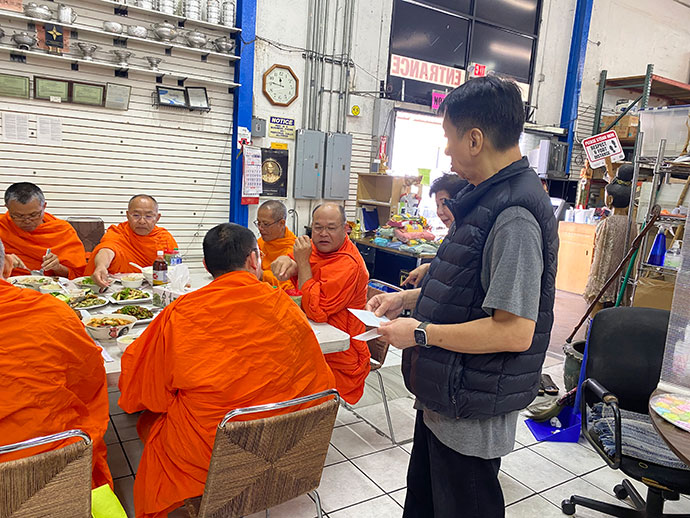 เมื่อวันพุธที่ 17 เมษายน 2567 : เอนก พลอยแสงงาม ประธานบริษัท LAX-C inc.; พร้อมทีมงานได้อาราธนานิมนต์พระสงฆ์จากวัดไทยลอสแองเจลิส โดยพระเดชพระคุณพระเทพมงคลวิเทศ เจ้าอาวาสวัดไทยฯ(ประธานพิธีสงฆ์) พร้อมด้วยพระสงฆ์จำนวน 8 รูป มาเจริญพระพุทธมนต์และทำบุญอุทิศส่วนกุศลให้กับบรรพบุรุษและผู้ที่ล่วงลับไปแล้วและถวายภัตตาหารเพลแด่พระสงฆ์ เนื่องในโอกาสเทศกาลวันสงกรานต์ (ปีใหม่ไทย) ประจำปี 2567 ที่ LAX-C SUPER MARKET: 1100 N.MAIN STREET LOS ANGELES,CA 90012 Tel:323-343-9000.