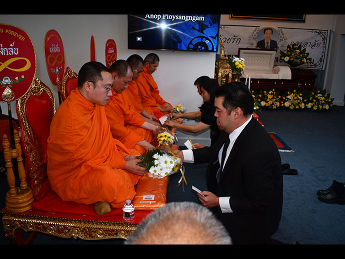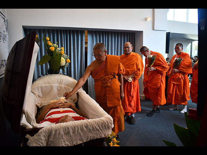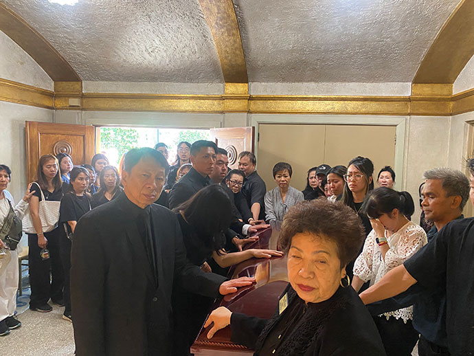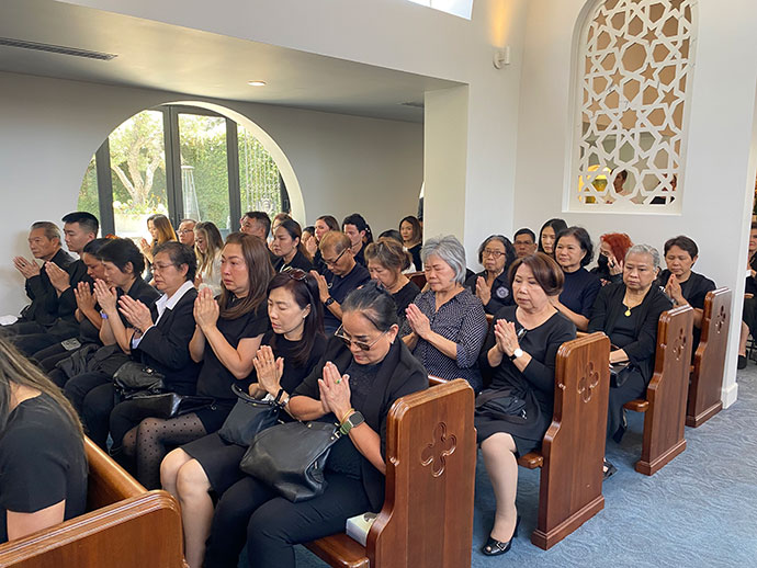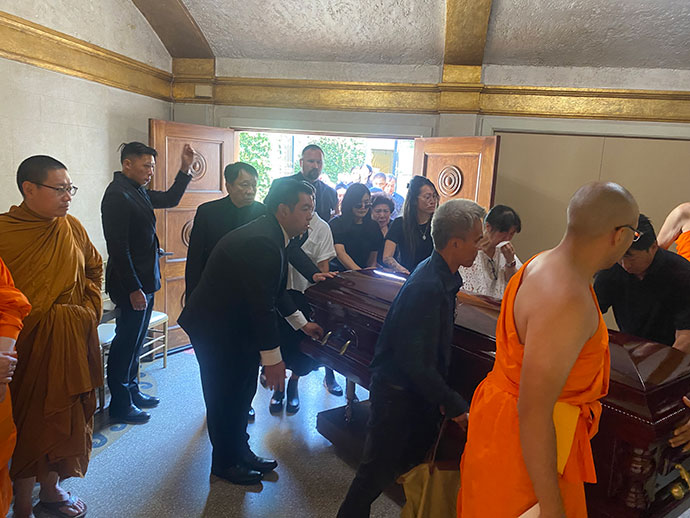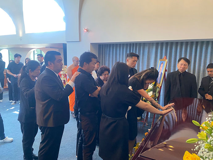 เมื่อวันอาทิตย์ที่ 14 กรกฎาคม 2567 เวลา 1.30 PM.ที่สุสาน Hollywood Forever : 6000 Santa Monica Blvd, Los Angeles, CA 90038 มีญาติสนิทมิตรสหายและท่านที่เคารพนับถือเข้าร่วมพิธีกันพร้อมหน้า