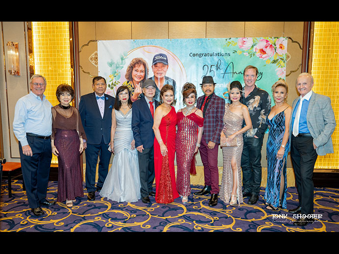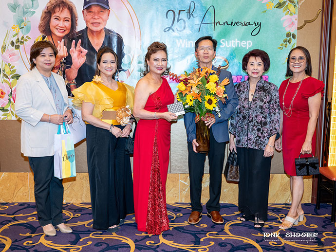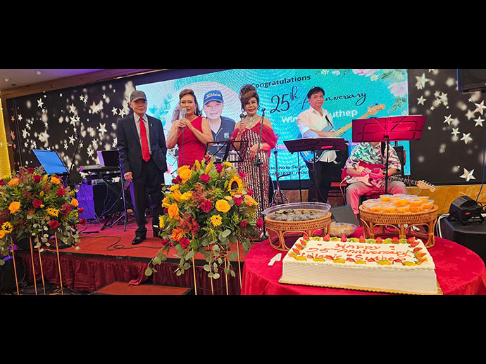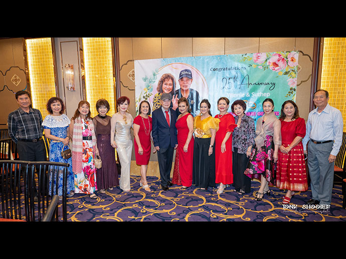 คู่ของคุณ วินนี่ และคุณสุเทพ เจ้าของร้านอาหาร President Thai เมือง Pasadena ที่ครองคู่กันมา 25 ปี จึงเลือกที่จะจัดงานฉลองความรักให้เพื่อนๆได้มีความสุขไปกับเค้าทั้งสองคนด้วย มีเพื่อนๆเกือบ 100 คน มาร่วมแสดงความยินดี มีความสุขกันทั่วหน้า ดูได้ที่ ประมวณภาพ Happy Anniversary วันครบรอบ 25 ปี ของคุณวินนี่ และ คุณสุเทพ