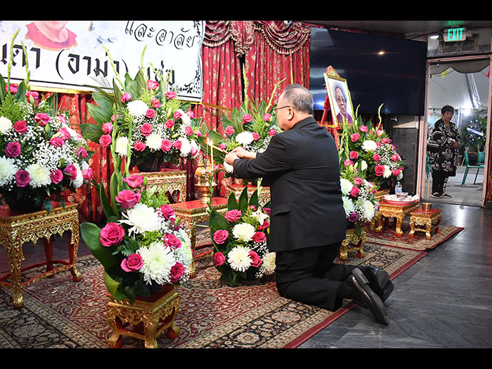 พิธีรดน้ำศพและพิธีสวดพระอภิธรรม คุณแม่จินดา “อาม่า” แซ่จู (พลอยแสงงาม) อายุ 91 ปี คุณแม่ของคุณ เอนก พลอยแสงงาม (เจ้าของและผู้บริหาร แล็คซี-ซูเปอร์มาร์เก็ต ไชน่าทาวน์) วันศุกร์ที่ 6 ธันวาคม 2567 เวลา 5.00 PM และพิธีสวดพระอภิธรรมบำเพ็ญกุศล วันศุกร์ที่ 6, วันเสาร์ที่ 7, และวันอาทิตย์ที่ 8 ธันวาคม 2567 เวลา 5.00 PM ณ วัดไทยลอสแองเจลิส 8225 Coldwater Canyon Ave North Hollywood, CA 91605