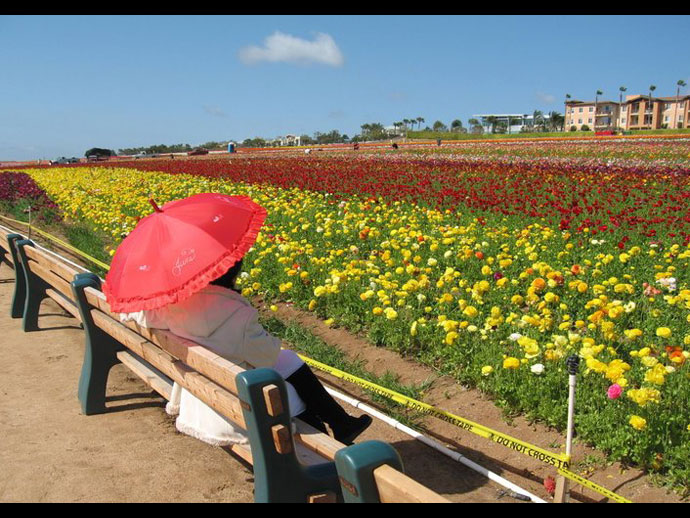 วันแรกของฤดูใบไม้ผลิ (SPRING) เพิ่งผ่านไปเมื่อวันอังคารที่ 20 ของเดือนนี้ ดอกเรนันคิวลัส (RANUNCULUS) กำลังเริ่มบานมีทั้งหมด 13 สี ปีหนึ่งๆ มีคนเข้าชมประมาณ 125,000 (หนึ่งแสนสองหมื่นห้าพัน) ถ้าขับรถจากแอล.เอ. ก็ใช้ฟรีเวย์สาย 5 ลงใต้ เส้นทางสวยงามก่อนถึงเมือง เดน่า พอยท (DANA POINT) เขต ORANGE COUNTY จะเริ่มเห็นฝั่งทะเลมหาสมุทรแปซิฟิคทางด้านขวามือขนานไปกับฟรีเวย์ ดูแล้วแสนจะสดชื่น เมืองคาร์ลสแบดอยู่ในเขตซานดิเอโก้ ถึงก่อนเมืองซานดิเอโก้ ห่างกันประมาณครึ่งชั่วโมง