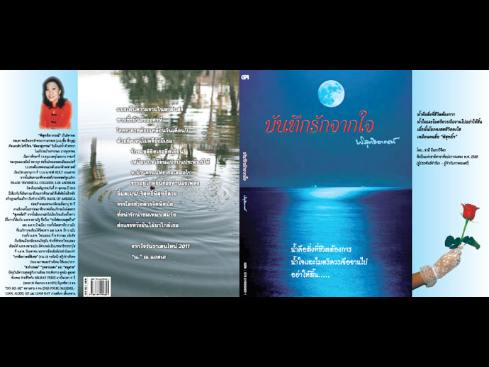 พี่ตุ่นเจ้าของบริษัทต้องลงเรือไปขึ้นรถที่จอดไว้ในที่สูง บางคันจะจอดบนแท่นพิมพ์ของโรงพิมพ์กรังค์ปรีซ์ เป็นอันว่า "บันทึกรักจากใจ" ต้องรอให้น้ำลด แปลกดี ปกหน้าและปกหลังรวมทั้งเรื่องข้างในเกี่ยวกับน้ำทั้งนั้น เข้ากับบรรยากาศของเมืองไทยอย่างดี