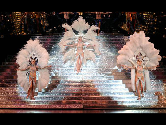 ฉากที่เป็นไฮไลท์เห็นจะเป็นชุดพัดใบใหญ่ทำด้วยขนนกสีแดง เต็มพรืดทั้งเวที ใช้ MEDLEY ของ COLE PORTER นักแต่งเพลงชื่อดังเช่นเพลง NIGHT AND DAY, I LOVE PARIS, BEGIN THE BEGUINE เห็นว่าค่าเสื้อผ้าฉากนี้ก็ประมาณ $7,000 คงเป็นการลงทุนที่พัดขนนกสีแดงเสียมากกว่า เพราะคุณสาวๆ ใช้เสื้อผ้าไม่เปลืองเลย ยิ่งกว่านุ่งน้อยห่มน้อยเสียอีก แต่ต้องขอเรียนให้ทราบว่า "ศิลป์" มากๆ จะไม่ใช้คำว่า "โป๊" โชว์นี้ CLASSIC เป็นที่สุด ดูได้อย่างสบายตา สบายใจ คงจะเป็นเพราะสิ่งประกอบหลายๆ อย่าง โดยเฉพาะเพลงเก่าๆ ที่ไพเราะ ส.ท่าเกษมขอแนะนำคุณผู้อ่านที่ยังไม่เคยไปดู...ไปดูซะ ให้รู้แล้วรู้แรดไป ! ยิ่งตอนนี้กำลังมีบัตรลดราคา ซื้อใบเดียวได้บัตร 2 ใบ พูดง่ายๆ ก็คือ ซื้อ 1 แถม 1 จะหมดเวลาในวันที่ 12-28-12 (เลขสวยซะด้วย) คูปองนี้ต้องติดตัวไปด้วยเวลาไปจองหรือซื้อบัตรที่หน้าโรงละคร ใน BALLY'S ซึ่งเป็น CASINO และ HOTEL บน STRIP คูปองนี้หาได้ในแมกกาซีนที่วางอยู่ในห้องพัก หรือแจกฟรีตามล็อบบี้ ที่แน่ๆ คือนิตยสาร THE LAS VEGAS GUIDE มีข้อจำกัดว่า ใช้ได้เพียง 4 บัตร และขึ้นอยู่ว่าจะมีที่นั่งหรือไม่ ต้องซื้อ วี.ไอ.พี. SECTION ซึ่งก็คุ้มแสนคุ้ม ฉากเดียวก็คุ้มเสียแล้ว ตัวนักแสดงเต็มไปทั่วทั้งบนเวที ข้างๆ เวที บนเหนือศีรษะคนดู ข้างหลังคนดู (พอดีเราได้ที่ข้างหน้า แถวที่ 2 เลยต้องแหงนขึ้นไปมองพวกที่เดินโชว์อยู่บนเวทีข้างหลัง) สรุปแล้วทางเราจ่ายไปเพียงบัตรละ 50 เหรียญ แต่ได้ที่นั่งเก้าอี้ วี.ไอ.พี. แถวที่สองตรงกลาง ขนาดไปจองบัตรทันทีที่ไปถึงและดูในคืนนั้น คงจะเป็นเพราะตรงกับวันพุธ ถ้าเป็นวันสุดสัปดาห์คงไม่ได้ที่ดีแบบนี้ สำหรับผู้ที่เกษียณแล้ว ควรจะหลีกเลี่ยง ศุกร์-เสาร์-อาทิตย์ หรือวันฮอลลิเดย์ต่างๆ พวกเราชอบไปกลางสัปดาห์สบายดี