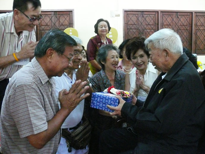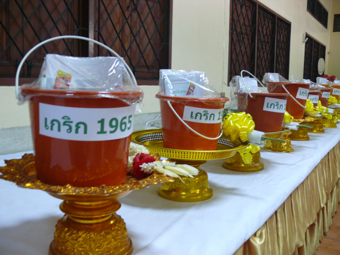 งานทำบุญอุทิศส่วนกุศลให้แก่อาจารย์เกริกและคณาจารย์และอุทิศให้เพื่อนๆ ที่ล่วงลับไปแล้วที่วัดปทุมวนารามได้รับกุศลโดยถ้วนทั่วทุกรูปทุกนามและผู้ไม่ได้เอ่ยชื่อ ณ ที่นี้ ได้รับกุศลจากเพื่อน ๆ ที่รักของท่านทุกคน...ขอขอบพระคุณท่านอาจารย์คณิศวร์ วรรณโชติ ที่ได้สละเวลา กรุณามาเป็นประธาน และท่านมาถึงวัดก่อนพวกเราเสียอีก...ขอขอบคุณเพื่อนๆที่ได้สละทรัพย์นำของมาช่วยงาน เช่น คุณวรุณ นำขนมจีบมาถวายพระและพวกเรามีส่วนได้รับด้วยความอร่อย อย่าลืมครั้งต่อไปด้วยนะครับ...ลักษณจิต เล็ก นำข้าวเหนียวเปียกลำไยมาถวายพระและมะม่วงน้ำปลาหวานศรัทธาของท่าน ขอให้เจริญ ๆ นะครับ... คุณวิมล ปานขำ อาสารับจัดอาหารถวายพระและบริจาคเงินอีก ห้าพันบาท สาธุ ๆ ๆ...คุณพรเพ็ญ(จี๊ด)และคุณตุ๋ย พูนสุข วิสุทธกุล สามี เพื่อนผมเองนำขนมตาลมาร่วม...คุณเป้า พิไลพรรณ กำลังสำคัญของพวกเรา รับจองสถานที่และจัดดอกไม้ถวายพระ แต่น่าเสียดายที่ท่านเจ้าคุณอมรไม่สามารถมาร่วมงานได้ เพราะต้องเข้าวัง...เอกชาต สมพงษ์รีบมาและช่วยดำเนินพิธีการไปด้วยความเรียบร้อย...ยรรยง เจริญพงษ์ รับอาสาช่วยถ่ายรูปให้พวกเราได้ชมกัน ขอบคุณครับ...ฟองนวล เจียมวิจักษณ์และภรณี(นิด) อาณาวรรณ ช่วยดูแลการเงินบริจาคและทำบัญชีให้เรียบร้อย ขอให้อยู่ช่วยกันนาน ๆ นะครับ...ต้องขอขอบพระคุณ เรียกแบบนี้เลย เพราะว่า ชื่นชมกับน้ำใจและซาบซึ้งกับการที่คุณสมพงษ์ ฉัตรรัตนาและคุณแดง จิระพร สืบศิริได้บริจาครายละ 1 หมื่นบาท เข้ารุ่นและทำบุญ รับรองว่า ผมจะตั้งใจทำงานกลับคืนให้เพื่อน ๆ ได้มีความสุข ส่วนรายอื่น ๆ มีในรายการละเอียดแนบมาพร้อมนี้ แต่ที่มีน้ำใจส่งเงินมาจากแดนไกล ได้แก่ โชติช่วง(ติ๋ว) 1 พันบาทและ วนิดา(แดง)4 พันบาท สาธุ...งานนี้ มีผู้ที่ไม่เคยมาร่วมงาน ได้มาร่วม รายแรก ได้แก่ ดร.วิทยา กฤตลักษณ์กุลได้ถ่ายรูปคู่กับอาจารย์คณิศวร์ แต่มีธุระ ต้องกลับก่อน...รายที่สอง ได้แก่ ภัทกา(ตุ้ย) ชาติบุญเกิด สาวปากน้ำ มาแบบว่า จำใครไม่ได้ พอเอ่ยชื่อเพื่อนที่ตายแล้ว บอกว่า นี่ เพื่อนฉันตายหมดแล้วหรือนี่ ตุ้ยครับ น้ำใจของตุ้ยที่มีให้เพื่อนนั้น ต้องคารวะให้ด้วยความจริงใจ...ทัศนีย์(แอ๊ว) ชินประทีป รีบมาบริจาคและนำรูปมาให้ กลัวโดนทวงอีก นับว่า น่ารักอีกท่าน...อภิวันท์(แดง) วิศเวศวร มาด้วยตนเองและในนามกำพล(ธรรมนูญ) สามี ขอให้หายวันหายคืนนะครับ...อีกท่าน อรุณี(แต๋ว)(ทาชอบ) กลิ่นมาลี ขนาด ไม่สบาย ขอมาก่อน แล้วเดี๋ยวกลับไปเข้า รพ. ใหม่ เพราะ ไม่ได้มีโอกาสมาพบปะเพื่อน ๆ เลย ต้องมาให้ได้ ขอให้มีสุขภาพแข็งแรงนะครับ...นลินี
