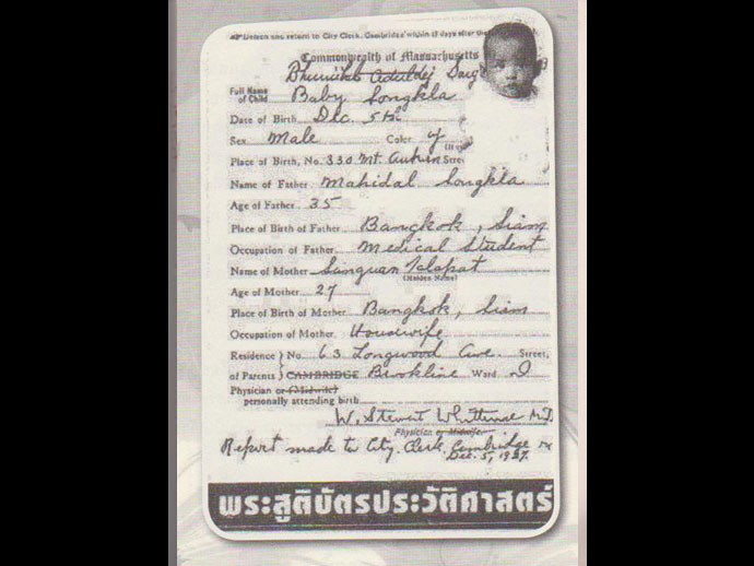 1) พระแสงขรรค์ชัยศรี มีความหมายถึงพระราชอำนาจบารมี และกำลังแผ่นดินที่จะฟันฝ่าให้เกิดการดำเนินการต่างๆ อันเป็นผลไปสู่ความมั่นคงแห่งพระราชอาณาจักรวันที่ 5 ธันวาคม พ.ศ. 2470 (ค.ศ.1927) พระวรวงศ์เธอพระองค์เจ้าภูมิพลอดุลยเดชฯ ประสูติที่โรงพยาบาลเมานท์ ออเบอร์น (MT.AUBURN) ในเคมบริดจ์ สมเด็จเจ้าฟ้ามหิดลอดุลยเดชฯ หรือสมเด็จพระมหิตลาธิเบศรอดุลยเดชวิกรมพระบรมราชชนก สิ้นพระชนม์ในวันที่ 24 กันยายน พ.ศ. 2472 (ค.ศ.1929) หลังจากเสด็จกลับถึงประเทศไทยในเดือนธันวาคม พ.ศ. 2471 ทั้ง 5 พระองค์