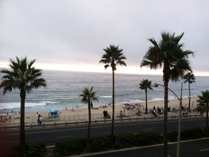 คืนนี้ทางเราก็ลงไปว่ายน้ำตามปกติ ประมาณ ๔ ทุ่มเห็นกลุ่มสวาทเดินผ่านสระน้ำเข้าห้องพักประมาณ ๗-๘ คน ในมือยังมีเครื่องดื่มติดมาด้วย คงกลับมาจากบาร์ที่ติดกับร้านอาหาร DINI’S BY THE SEA ที่อยู่ชั้นล่าง ชั้นเดียวกับห้องพักแขก หลงคิดว่าเป็นเด็กอนามัยในตอนแรก พอเราขึ้นจากสระน้ำ เดินผ่านหนึ่งในทีมเห็นนั่งพูดโทรศัพท์อยู่ตรงลานหน้าห้องพัก เลยคิดเอาเอง (อีกแล้ว!) ตามประสาคนชอบคิดชอบฝันว่า ชัวร์ ชัวร์ เลย หนุ่มคนที่นั่งพูดโทรศัพท์นี้วันขับรถเข้าแอล.เอ. คงจะมีความรู้สึกเช่นเดียวกับที่ฮูลิโอ อิเกลสเซียส บรรยายไว้ในเพลง “99 MILES FROM L.A.” และอาจจะมีอีกหลายหนุ่มที่คิดถึงแฟนเช่นกัน