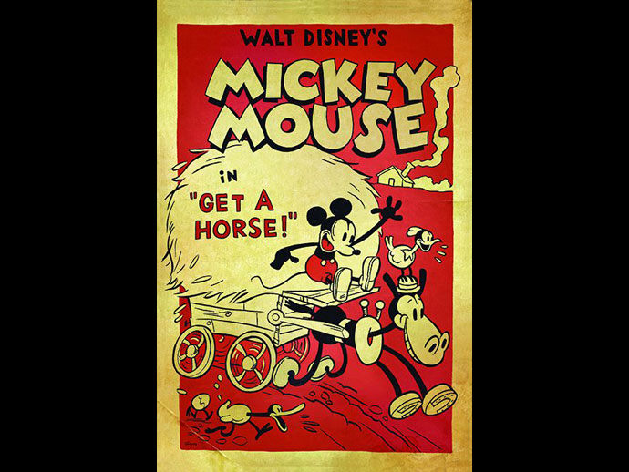 มิกกี้เมาส์ ถือกำเนิดขึ้นในปี 1928 บนขบวนรถไฟนิวยอร์กสู่ลอสแอนเจลีส ขณะนั้น “วอลท์ ดีสนี่ย์” มีอายุเพียง 27 ปีเขาเดินทางกลับจากการเจรจากับเพื่อนร่วมงานที่ ฉ้อโกง ทำให้เขาสูญเสียลิขสิทธิ์การ์ตูนกระต่ายที่เขาวาดขึ้นมาเองกับมือ บนรถไฟนั้นเองที่ วอลท์ จินตนาการถึงเจ้าหนู กางเกงแดงตัวเล็กๆ ตัวหนึ่งขึ้นมา เขาลงมือวาดมันขึ้นและตั้งชื่อมันว่า “มอร์ติเมอร์” แต่ลิเลียนผู้เป็นภรรยาที่เดินทางไปกับเขาด้วย กลับติว่าชื่อนี้เป็นทางการและจริงจังเกินไป ก่อนจะตั้งชื่อใหม่ให้มันว่า “มิกกี้ เมาส์”