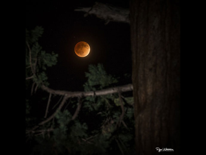 ประมาณครึ่งหนึ่งของสหรัฐฯ ถูกปกคลุมไปด้วยเมฆ ทำให้ไม่สามารถมองเห็นพระจันทร์สีเลือดได้ชัดเจน แต่มีรายงานว่า คนที่อยู่ในเมืองดัลลัส / เดนเวอร์/ ลอสแอนเจลิส เห็นแบบเต็มๆ