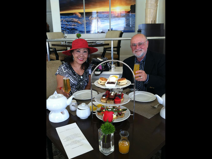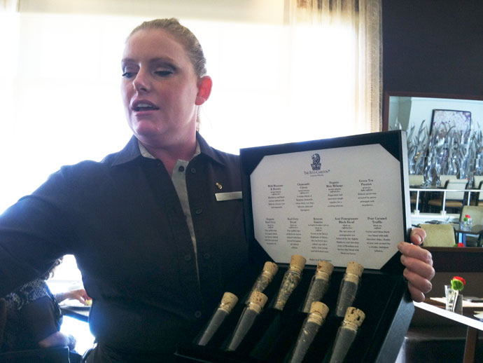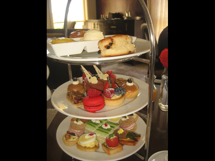 ปีที่แล้วไปดื่มน้ำชาที่ FOUR SEASONS, CARLSBAD หนึ่งปีผ่านไปอย่างไม่รู้ตัว ถ้าถามว่าที่ไหนดีกว่าคงจะตอบลำบาก ขึ้นอยู่กับความสะดวกมากกว่า ถ้าอยู่แอล.เอ. RITZ-CARLTON ที่ DANA POINT จะใกล้กว่า สำหรับเรื่องอาหาร บริการ ราคาและสถานที่ แล้วแต่ใครชอบอะไร? ประเภท "ลางเนื้อชอบลางยา" สำหรับ ส.ท่าเกษม บรรยากาศต้องมาก่อน เพราะชอบน้ำชอบทะเลเลยชอบทั้ง ๒ แห่ง พูดกันตามจริงของว่างที่เสิร์ฟจะคล้ายๆ กันตามหลักของ AFTERNOON TEA เช่น CURRANT SCONES - JAM/ / LEMON CURD / DEVONSHIRE CREAM, SMOKED SALMON / SAFFRON CREAM, ENGLISH CUCUMBER - FINE HERB CREAM CHEESE ส่วนของหวานจะขาดไม่ได้คือ MACAROONS และ FRESH FRUIT TARTS นอกนั้นก็แล้วแต่เชฟของแต่ละห้องอาหารจะถนัดอะไรบ้าง