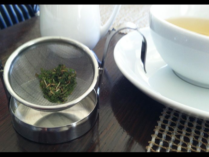 หลังจากเลือกชาที่เราต้องการจะดื่ม (ทุกคนมีโถชาเป็นส่วนตัว) พอดีชาที่เลือกมีรสขม พนักงานผู้เชี่ยวชาญทางชาได้นำโถและถ้วยชามาเปลี่ยนให้พร้อมทั้งชาที่เราเลือก ใหม่อีกชนิด ถ้าคุณผู้อ่านเห็นรูปในจาน ๓ ชั้นจะมี คานาเป้ (CANAPES) และขนมชิ้นเล็กๆ เพียงไม่กี่อัน แต่ก็อิ่มได้เหมือนกันจากชารสดีกลิ่นหอม ที่ดื่มกันเป็นถ้วยๆ คลุกเคล้ากับบรรยากาศ “ฟ้ากอดนที” เลยนั่งดื่มชาเพลิน....