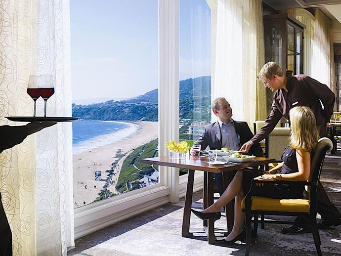 เมื่อย่างเท้าก้าวแรกเข้าไปในล้อบบี้ จะมีพนักงานมาต้อนรับถามจุดประสงค์ของเรา และเมื่อทราบว่ามาดื่มน้ำชาก็จะบอกทางไปยังห้องอาหาร “RAYA” ซึ่งแยกบริเวณสำหรับ AFTERNOON TEA โดยเฉพาะเป็นสัดส่วน ทุกโต๊ะจะมองเห็นมหาสมุทรแปซิฟิคเบื้องล่าง เนื่องจาก RITZ-CARLTON ที่ DANA POINT นี้ตั้งอยู่บนหน้าผาสูง (CLIFF) ดังที่เห็นในภาพ