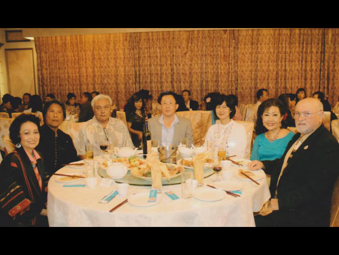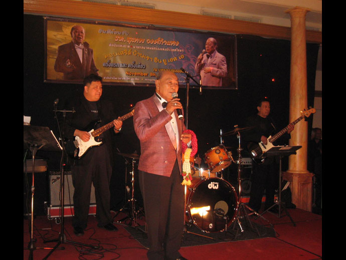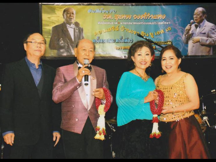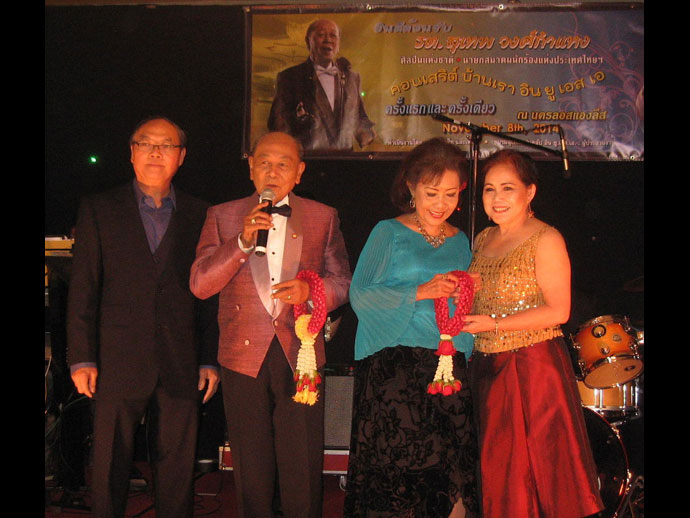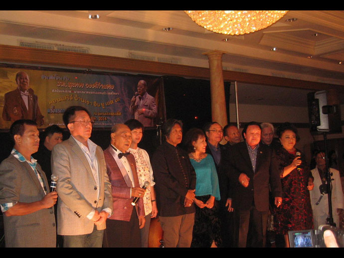 “บ้านเรา” ท่านกงสุลใหญ่แห่งนครลอสแอนเจลีส เจษฎา และภรรยา ปาริชาต กตเวทิน กรุณาให้เกียรติแก่งาน “คืนหนึ่งกับสุเทพ วงศ์กำแหง” ท่านกงสุลใหญ่ขึ้นเวทีกล่าวเชิญชวนแขกผู้มีเกียรติในงานร่วมถวายพระพรและร้องเพลง