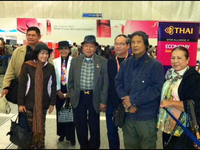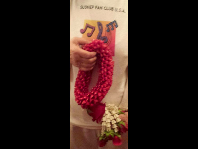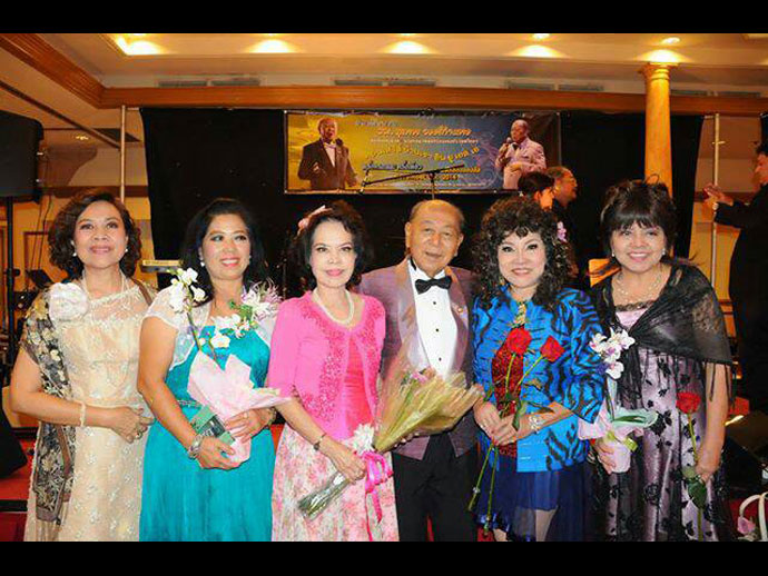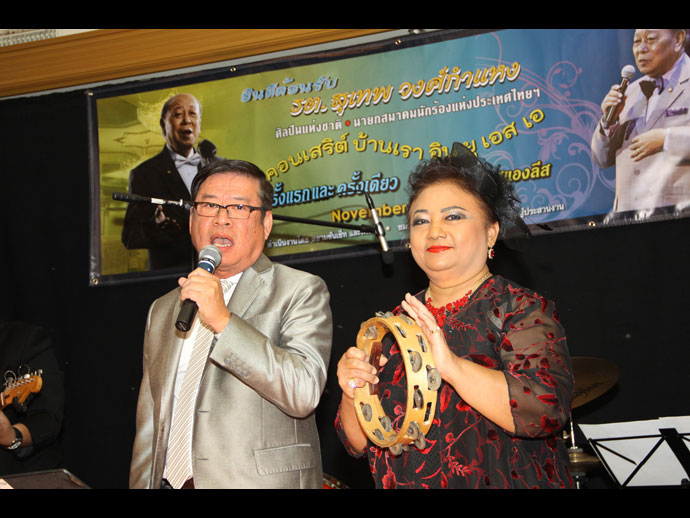 ๔ ปีที่แล้ว วันที่ ๑๙ กันยายน ๒๐๑๐ ประธานชมรมฯ มีงานของตัวเองฉลองครบรอบวันสมรส ๔๐ ปี ที่ CASTAWAY, BURBANK “คอนเสิร์ต ร.ต.สุเทพ วงศ์กำแหง ศิลปินแห่งชาติ เจ้าของ เสียงขยี้แพรในฟองเบียร์” มีคืนวันเสาร์ที่ ๑๘ ก.ย. ซึ่งเป็นไปไม่ได้ที่จะจัดงานใหญ่ ๒ คืนซ้อน จึงได้ขอให้คุณเกรียงศักดิ์ช่วยจัดแทน ประโยคแรกที่เอ่ยคือ “ไม่เป็นไรครับพี่ ผมจัดเอง ไม่ต้องห่วง!” ก็ไม่ต้องห่วงจริงๆ งานคืนนั้นมีเพื่อนๆ ช่วย แฟนเพลงมากันล้นห้องอาหาร “คุณแดง” เหมือนเล่นเก้าอี้ดนตรีต้องผลัดกันนั่ง งานประสบผลสำเร็จเกินคาด ศิลปินแห่งชาติสัญญากับแฟนๆ ว่าจะกลับมาอีกปีหน้า ท่านจบเพลง “ลาก่อนสำหรับวันนี้“...หวังเจอะกันปีหน้าเอย ! ปีหน้ากลายเป็นปีนี้ ๒๐๑๔ ช้าไปเพียง ๓ ปี สาเหตุเพราะเคลียร์งานไม่ได้ พอจะมาได้ก็มีปัญหาเรื่องหู นายแพทย์ประจำตัวขอร้องไว้อย่าเพิ่งบินเลย อีกครั้งท่านจะบินมาคืนวันศุกร์ ร้องเพลงวันเสาร์ แล้วบินกลับวันอาทิตย์ พวกเราอ้าปากค้าง...เป็นไปได้อย่างไรกัน ! ครั้งนี้คุณเกรียงศักดิ์ฉายเดี่ยว เพราะเพื่อนๆ ที่ช่วยคราวที่แล้วอ้างว่า “แก่กันแล้ว” โชคดีมีคุณพงษ์เดชช่วยเคียงคู่ตลอดงาน แถมเป็นเพื่อนกับเจ้าของภัตตาคาร ๘๘๘ ที่จัดงาน MR.KEVIN WONG บริการเต็มที่ทำอะไรๆ ง่ายขึ้น เช่นจัดไว้ ๒๐ โต๊ะ ขยายอย่างกระทันหันเป็น ๒๕ โต๊ะ เพราะมีแฟนเพลงไปซื้อบัตรที่งาน บ้างก็โทรฯ มาวันสุดท้าย ทางร้านขยายห้องให้เล็กให้ใหญ่ได้ ประธานฯ จัดงานมีความสุขกับผลงาน ฝากขอบคุณมาทางคอลัมน์นี้ คุณวาฑิต (ดอน) เจริญสุดใจ เป็นผู้ทำงานอาร์ททุกอย่าง BANNER POSTERS บัตรคอนเสิร์ต ถ่ายรูป ขับรถ บริการให้ความสะดวกกับศิลปินแห่งชาติ คุณไพสันติ์ พรหมน้อย ผู้ก่อตั้ง The Asian Pacific News ที่ปรึกษากิตติมศักดิ์ของชมรมฯ ช่วยโปรโมทมาตั้งแต่ต้นจนจบ ถ้าจะขอบคุณ คุณดนัยภัทร์ บุญยะพรรค คุณผู้อ่านคงไม่รู้จัก แต่ถ้าบอกขอบคุณ “ต้อย ตีวิด” คงจะรู้จักกันดี โฆษกเจ้าของร้านอาหาร (เศรษฐีเงียบ) ไม่ใช่โฆษกคนยาก กับโฆษกนักร้อง คุณกิ่งกาญจน์ ศิระเลิศ และน้องๆ แห่งวง “SOUND OF BANGKOK”