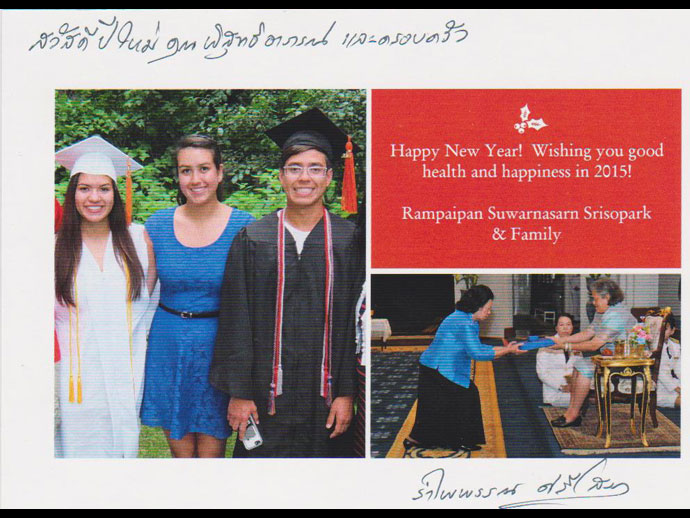 เสาร์นี้ได้นำ ส.ค.ส. ที่ได้รับจากผู้ใหญ่ที่เคารพนับถือในประเทศสหรัฐอเมริกา รวมทั้งของญาติสนิทมิตรสหายมาลง เป็นการแบ่งปันความสุขที่ได้รับมาและถ่ายทอดมายังคุณผู้อ่านทุกๆท่าน สำหรับเจ้าของบัตรอวยพรความสุข ส.ท่าเกษม ขอขอบคุณจากส่วนลึกของหัวใจ ขอให้พรนั้นตอบสนองกลับไปอีกร้อยเท่าพันเท่า....