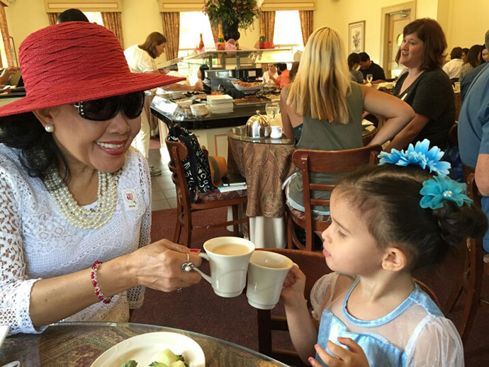 และนี่คือความเคยชินความผูกพันกับ “น้ำชายามบ่าย” เพิ่งจะกลับมาดื่มน้ำชากับของว่างเมื่อประมาณ ๗ ปีหลังนี่เอง คงจะเป็นเพราะถูกเชิญไปงาน BRIDAL SHOWER (เมื่อเพื่อนสาวจะสละโสด) ที่ห้องน้ำชาใน OLD TOWN เมือง PASADENA ตั้งแต่นั้นมาพอมีวาระโอกาสพิเศษอะไร จะต้องสืบเสาะหาที่แปลกๆ ใหม่ๆ ไปนั่งดื่มน้ำชา รับประทานแซนวิช ขนมปังไร้กรอบชิ้นเล็กๆที่มีไส้ชนิดต่างๆ (Finger Sandwiches) และของว่างขนมอีกมากมายหลายชนิด ไปเป็นประจำทุกวันไม่ได้กระเป๋าฉีกแน่ !!! ยกตัวอย่าง ค่าเข้าไปใน HUNTINGTON LIBRARY คนละ ๒๕ เหรียญ (ผู้ใหญ่) และค่าน้ำชาอีก ๓๑ เหรียญ (ผู้ใหญ่) ของเด็ก (๔-๕ ขวบ) คนละ ๑๘.๙๙ เหรียญ (๒-๓ คน) คนละ ๗.๕๐ เหรียญรวมภาษี ที่เขาคิดแยกเพราะส่วนใหญ่ผู้คนจะเข้าไปชมต้นไม้ ดอกไม้ ภาพเขียน ห้องสมุดที่มีหนังสือเก่าๆ หาอ่านที่อื่นไม่ได้ งานศิลปะ ฯลฯ ภาพเขียนที่มีชื่อเสียงไปทั่วโลกคือ “THE BLUE BOY” โดย THOMAS GAINSBOROUGH ประมาณ ค.ศ. ๑๗๗๐ และ “PINKIE” โดย THOMAS LAWRENCE ) ประมาณ ค.ศ. ๑๗๙๔