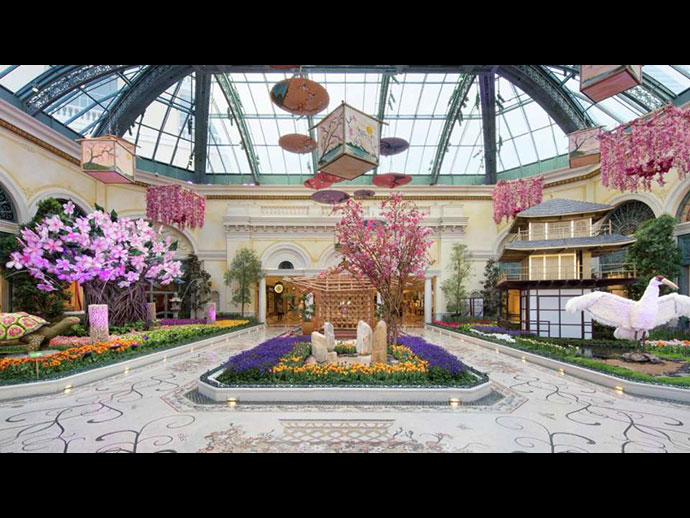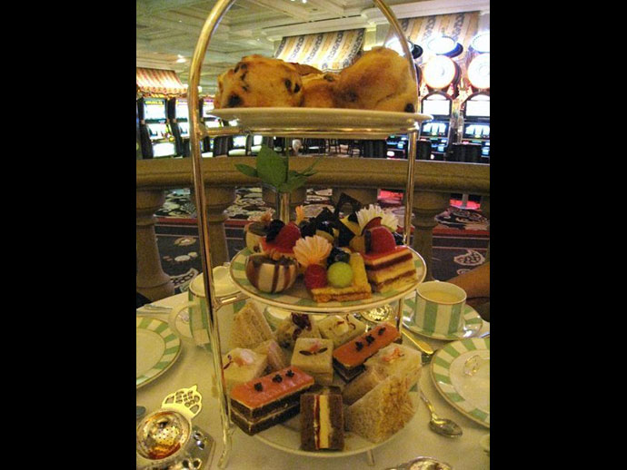 ลาสเวกัส เป็นเมืองที่ตั้งอยู่ใน ทะเลทรายโมฮาวี่ (MOJAVE DESERT) ถึงแม้จะไม่ใช่เมืองหลวงแต่เป็นเมืองที่ใหญ่และนำรายได้เข้าสู่รัฐ ผู้คนจากทั่วโลกเดินทางมาเสี่ยงโชคและหาความสุขหาความสำราญกับแสงเสียง อบายมุข อาหาร การบันเทิง ช็อปปิ้ง ฯลฯ ผู้ที่มาเที่ยวลาสเวกัสบ่อยๆต่างก็มีรีสอร์ทหรือโฮเต็ลโปรดที่ชอบพักเป็นประจำ ส.ท่าเกษม ก็มีเช่นเดียวกัน แต่ไม่ใช่ที่ BELLAGIO เพียงแต่ชอบมาหาความสุขกับเสียงเปียโน ระบำน้ำพุ และสวนสวรรค์ดังที่กล่าวมาแล้วในตอนต้น มาลาสเวกัส ทีไรต้องมา BELLAGIO ทุกครั้งไม่เคยพลาด แต่ที่พลาดคือ HIGH TEA @ PETROSSIAN BAR ไม่เคยทราบมาก่อนเลยว่ามีบริการในด้านนี้ ทั้งๆ ที่มาที่นี่นานหลายปีนับครั้งไม่ถ้วน อยู่ใต้จมูกนี่เอง ! โฮเต็ลนี้เปิดมา ๑๗ ปี เมื่อก่อนคือ DUNES HOTEL AND CASINO ที่ถูกทุบทิ้งแล้วสร้างใหม่ ดำเนินงานโดย MGM RESORTS INTERNATIONAL มี ๓,๙๕๐ ห้อง มีเจ้าหน้าที่พนักงานรวมประมาณ ๘,๐๐๐ คน
