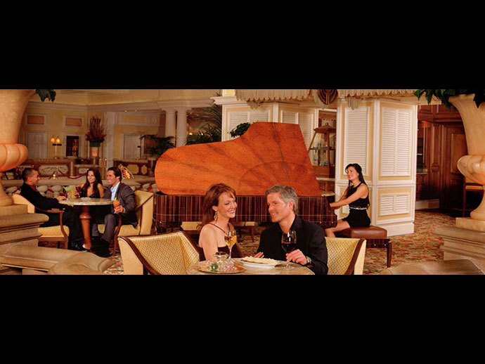 ตามประสาคนชอบดื่มน้ำชา เลยเที่ยวเสาะหาสถานที่ดื่มน้ำชาไปเรื่อยๆ ครั้งล่าสุดนี้ไปพบที่ “BELLAGIO” เป็นโฮเต็ลและคาสิโนที่ชอบไปเป็นประจำ มีหลายๆ อย่างที่ติดใจเช่น ระบำน้ำพุ (DANCING WATER FOUNTAIN) หน้าโฮเต็ล ถือโอกาสออกกำลัง เดินไปเดินมาหลายเที่ยว ภายใน CONSERVATORY และ BOTANICAL GARDEN จะเปลี่ยนการตกแต่งสวนทุก ๔ ฤดู ฤดูใบไม้ผลิ ฤดูร้อน ฤดูใบไม้ร่วง ฤดูหนาว และตรุษจีน ทุกธีมจะประดับประดาใช้ดอกไม้เป็นหลักตามฤดูกาล ชอบไปนั่งฟังเปียโน @ PETROSSIAN BAR อยู่ทางซ้ายมือของทางเข้าบริเวณคาสิโน บาร์นี้เปิดตลอด ๒๔ ชั่วโมง มีนักเปียโนผลัดเปลี่ยนประมาณ ๑๐ คน แต่ ส.ท่าเกษม ได้มีโอกาสฟังเพียง ๔ คน ที่เห็นในคอลัมน์คือ มาร์ท่า หรือ MARTA กำลังเล่นอยู่ตอนเราไปนั่งจิบน้ำชา ส่วน วิทนี่ย์ ฟีนิกซ ได้ฟังเมื่อเดือนที่แล้วตอนพรรคพวกเชิญไปรับประทานอาหารค่ำแบบบุฟเฟ่ต์ที่ เบลล่าจิโอ หลังจากนั้นแวะดื่มและฟังเสียงเปียโนที่บาร์ อีก ๒ คน เคยฟังเขาเล่นบ่อยๆ ไม่ได้นำรูปมาลง เดวิด ออสบอร์น และ นอร์แมน วิโต้ เล่นเพลงประเภทเดียวกันเพียงแต่สไตล์จะต่างกันในอารมณ์และการพรมนิ้วลงไปบนคีย์เปียโน นักเล่นเปียโนที่นี่เล่นเพลงตามคำขอด้วย ใครมีเพลงโปรดที่ชื่นชอบขอไปได้เลย