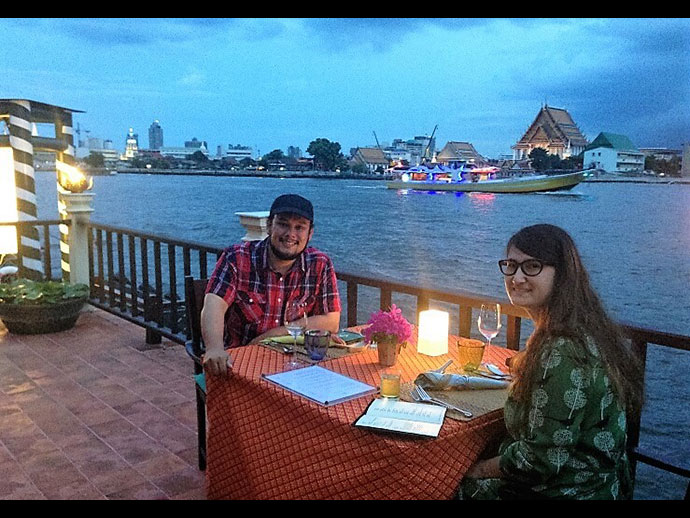 ส่วนการล่องแม่น้ำเจ้าพระยานั้นมี คุณลุงเชาวน์ กรุณาเป็นไกด์กิตติมศักดิ์ คอยชี้และอธิบายสถานที่เป็นเวลา ๓ ชั่วโมง ล้วนแล้วแต่เป็นสถานที่ที่สำคัญในชีวิตของผู้เป็นแม่ ตั้งแต่เกิด เติบโต กิน เล่น ในแม่น้ำเจ้าพระยาทั้งนั้น สหรัฐถ่ายรูปสถานที่ต่างๆบนริมฝั่งแม่น้ำส่งมาให้ แต่นำมาลงไม่ครบ เช่น เจดีย์วัดอรุณฯ ที่แม่ปีนขึ้นไปทำ TERM PAPER ส่งครู และ วัดสามพระยา ที่แม่ว่ายน้ำกลับไปกลับมาจากท่าน้ำ บ้านท่าเกษม โรงเหล้าที่มีปล่องไฟสูงอยู่ตรงข้ามกับ บ้านท่าเกษม หายไปแล้ว ปัจจุบันเป็นที่ตั้งของอนุสาวรีย์ รัชกาลที่ ๘ สะพานพระราม ๘