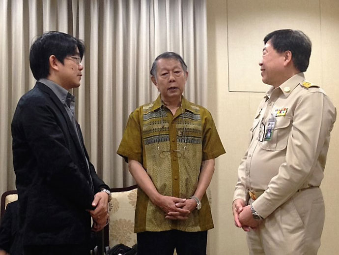 เป็นธรรมดาที่ผู้เป็นแม่จะต้องจัดฉากให้ ขอเพียงแค่ ๓ รายการเท่านั้นที่กรุงเทพฯ ๑) เยี่ยมชมบ้านเก่าของบรรพบุรุษ ทำเนียบรัฐบาล ๒) เยี่ยมชม “กันตนา กรุ๊ป” ๓) ล่อง แม่น้ำเจ้าพระยา ทุกอย่างผ่านไปแล้วใน ๓ วันแรกที่ สหรัฐถึง “แผ่นดินแม่” เรียกว่าไม่มีเบรกกันเลย จากประเทศญี่ปุ่นบินด้วย สายการบินไทย ถึง สนามบินสุวรรณภูมิ หลังกำหนดเวลาครึ่งชั่วโมง ส.ท่าเกษม อยู่ทางนี้แต่ติดต่อกับคนทางเมืองไทยตลอด น้องชายคนรอง บทจรพายัพทิศ เคยทำงานกับสายการบินไทยและอบรมพนักงานรุ่นหลังๆเลยยังมีคนรู้จักอยู่บ้าง ลูกพี่ลูกน้องของ สหรัฐ ชื่อ AIR เป็นกัปตันขับให้ สายการบินไทย ทางประเทศในยุโรปและเป็นครูด้วย มียศเป็นเรืออากาศโทเมื่อลาออกจากกองทัพอากาศ ส่วนทางพื้นดินมีลูกพี่ลูกน้องชื่อ BOSS ทำงานอยู่กับ SINGAPORE AIRLINES เรียกว่าพอก้าวเท้าขึ้นเครื่อง ทั้งคู่ได้รับการดูแลอย่างดีจนถึงที่พัก ถาม เซียร่า ว่าทำไมเลือก สายการบินไทย เธอตอบว่าเดินทางไปเมืองไทยก็ต้องบิน สายการบินไทย !