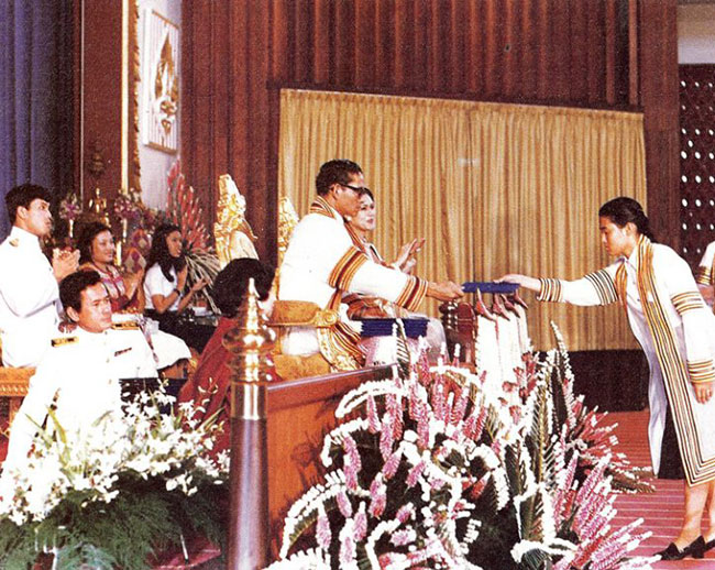 สมเด็จพระเทพรัตนราชสุดาฯ สยามบรมราชกุมารี ทรงสอบเข้าศึกษาต่อในระดับอุดมศึกษา ณ คณะอักษรศาสตร์ จุฬาลงกรณ์มหาวิทยาลัย โดยสามารถทำคะแนนสอบเอนทรานซ์เป็นอันดับ ๔ ของประเทศ ซึ่งถือเป็นสมเด็จเจ้าฟ้าพระองค์แรกที่ทรงเข้าศึกษาต่อระดับอุดมศึกษาในประเทศ จนกระทั่ง ปี พ.ศ. ๒๕๒๐ พระองค์ทรงสำเร็จการศึกษาได้รับ พระราชทานปริญญาอักษรศาสตรบัณฑิต สาขาประวัติศาสตร์ เกียรตินิยมอันดับหนึ่ง เหรียญทอง ด้วยคะแนนเฉลี่ย ๓.๙๘