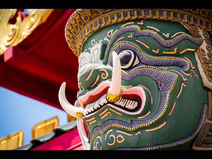 เขียนคุยเรื่องยักษ์ไปแล้ว ตั้งแต่การเดินทางออกจากประเทศไทยจนถึง มายืนตระหง่านคุ้มครองป้องกันอุโบสถวัดไทยแอลเอ ในประเทศสหรัฐฯ ทีนี้มาคุยเรื่องสาวน้อยหน้าตาน่ารัก ตากลมคมขำรับกับคิ้วเข้มได้รูป เติมความงามดูเด่นบนใบหน้า รูปร่างกระทัดรัดแบบหญิงไทยแต่เธอลุยงานเช่นผู้ชายอกสามศอก ต้องทำแม่พิมพ์ ปั้น ปีนขึ้นไปนั่งร้านเพื่อตกแต่งดิน เนื่องด้วยยักษ์มีขนาดใหญ่จึงต้องขึ้นไปบนนั่งร้านที่ประกอบด้วยแผ่นไม้เสาไม้มีระดับสูงเท่าตัวยักษ์ นอกจากนี้ยังต้องใช้วัสดุต่างๆในการทำงานครั้งนี้ ไม่ว่าจะเป็นท่อน้ำ ปูนพลาสเตอร์ ไฟเบอร์กลาส โครงเหล็ก ฯลฯ เธอต้องทำงานเคียงคู่ไปกับทีมงานอย่างอดทนจนเสร็จงาน