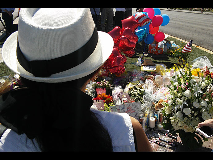 วันอาทิตย์ที่ ๑ ตุลาคม เรา ๒ คนย้ายเข้า TROPICANA HOTEL โทรฯสั่งจองบัตรที่ MANDALAY BAY เลือกดูคืนนั้นเลย ไม่ชอบผลัดวันประกันพรุ่ง กลัวพลาดเพราะกว่าจะมาอีกทีก็ปีหน้า เสาร์นี้ได้นำรูปมาลง ๑๔ ใบ เป็นการเล่าเหตุการณ์ด้วยภาพ จากวันที่ ๑ จนถึงวันนี้วันพุธที่ ๔ ดังนั้นจำนวนตัวเลขและข้อความบางตอนอาจจะไม่ตรงกับเวลาที่หนังสือพิมพ์วางแผง คืนนั้นนั่ง MONORIALไปดูโชว์เพราะสะดวกมาก สายตรงจาก TROPICANA ไป MANDALAY BAY ที่มี M.J.ONE โชว์อยู่ โชคดีที่ไม่ได้เอารถไป เพราะในราวตี ๒ ครึ่งหลังจากทางโฮเต็ลและเจ้าหน้าที่ตำรวจประสานงานกัน จึงประกาศว่าจะพาพวกเราทั้งหมดที่ถูกเก็บตัวอยู่ในโรงละครไปที่มหาวิทยาลัยเนวาด้า ห้ามไม่ให้กลับไปเอารถที่ที่จอดรถของโฮเต็ล มาทราบที่หลังว่าตร. ค้นรถฆาตกรที่จอดอยู่ในที่จอดรถ พบสารทำระเบิดและอาวุธปืนอีกจำนวนหนึ่ง