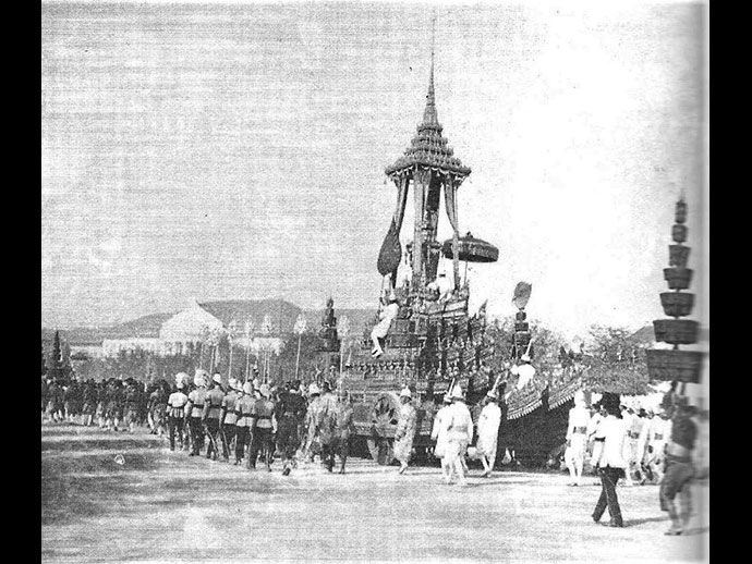 พ.ศ. ๒๔๓๗ เชิญพระบรมโกศทรงพระบรมศพ สมเด็จพระบรมโอรสาธิราช เจ้าฟ้ามหาวชิรุณหิศ สยามมกุฎราชกุมาร