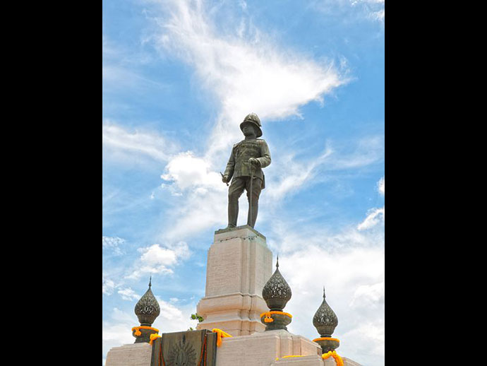 พระบรมราชานุสาวรีย์แห่งแรกของ พระบาทสมเด็จพระมงกุฎเกล้าเจ้าอยู่หัว สร้างแล้วเสร็จเมื่อพ.ศ. ๒๔๘๕ ประดิษฐาน ณ สวนลุมพินี ซึ่งเป็นบริเวณที่ดินส่วนพระองค์ ที่พระราชทานไว้เป็นสมบัติของประชาชน เพื่อจัดงานสยามรัฐพิพิธภัณฑ์แสดงสินค้าไทยแก่ชาวโลกเป็นครั้งแรก เพื่อบำรุงเศรษฐกิจและพาณิชยกรรมของประเทศ (แต่มิทันได้จัดก็เสด็จสวรรคตเสียก่อน) และทรงตั้งพระราชหฤทัยว่าเมื่อเสร็จงานแล้ว จะพระราชทานเป็นสวนสาธารณะพักผ่อนหย่อนใจแห่งแรกในกรุงเทพฯ ทั้งนี้ ในวันคล้ายวันสวรรคตของทุกปี วันที่ ๒๕ พฤศจิกายน พระบาทสมเด็จพระเจ้าอยู่หัว จะเสด็จพระราชดำเนินไปทรงวางพวงมาลาถวายบังคม พระบรมราชานุสรณ์ ณ สวนลุมพินีแห่งนี้ (บางครั้งจะเป็นผู้แทนพระองค์) ในวันนั้นมีหน่วยราชการ หน่วยงานเอกชน นิสิตนักศึกษา พ่อค้าประชาชนจำนวนมากไปวางพวงมาลาถวายราชสักการะ และยังทรงพระกรุณาโปรดเกล้าฯ ให้บำเพ็ญพระราชกุศลอุทิศถวาย ณ วชิราวุธวิทยาลัย